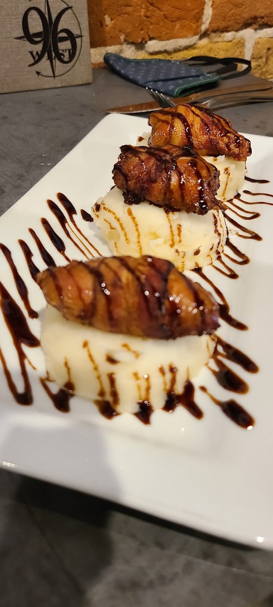Ninety Six West is situated at 103 S Baylor St, Brenham, TX 77833, United States. This restaurant type venue has received 434 user reviews. It serves a menu including varied dishes like Bacon Wrapped Quail, Brussels Sprouts, Lox Flatbread, Chocolate Eruption Cake, and Grilled Salmon, showcasing a range of flavors.