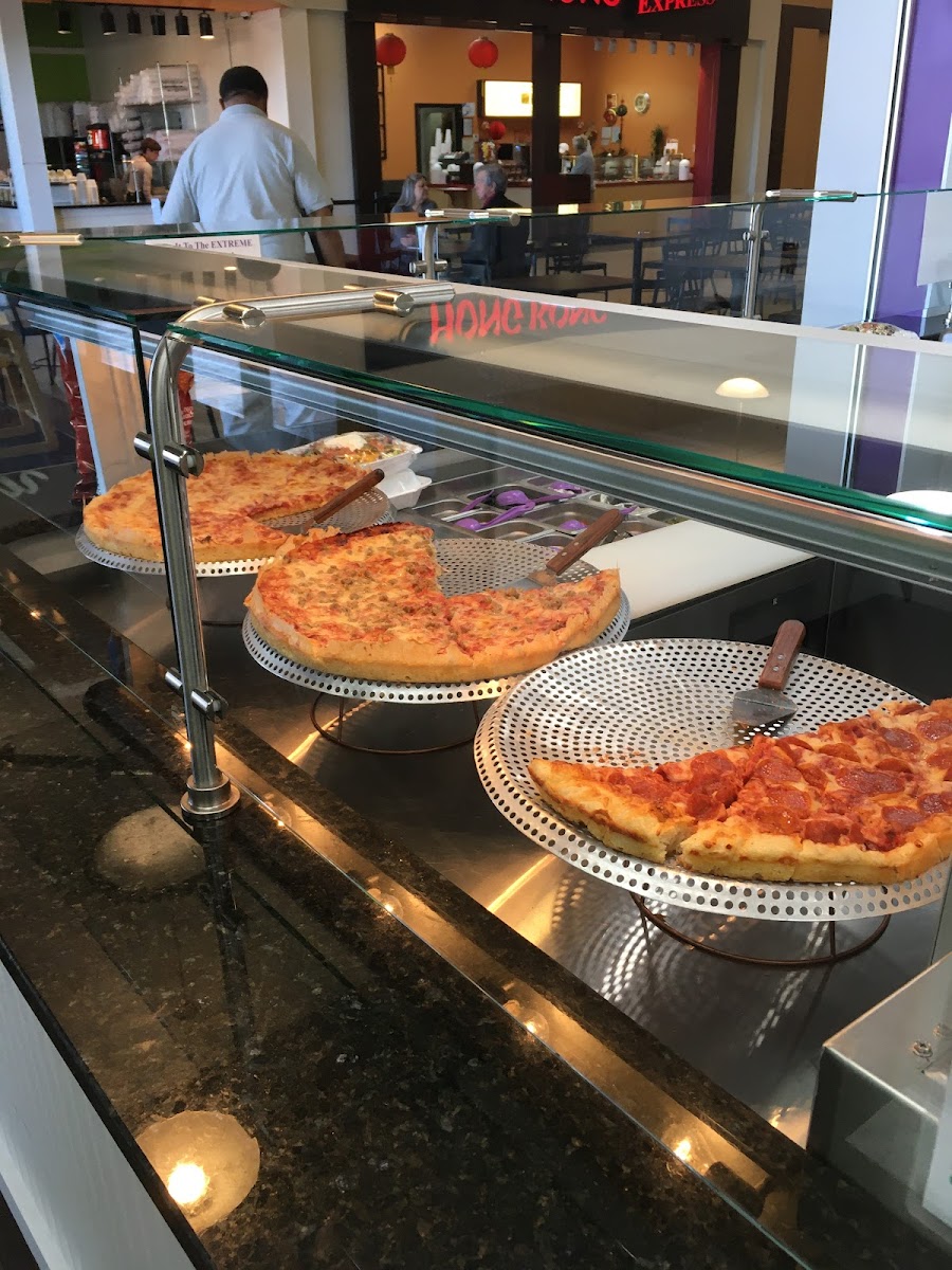 A different lunch option with thick crust pizza, salads soups, wings and baked potatoes. Guests sit at pIcnic tables with table cloths. Service is friendly and efficient. Pizza could have been warmed up a little, but was very tasty. The restaurant has entrances inside the mall and outside.