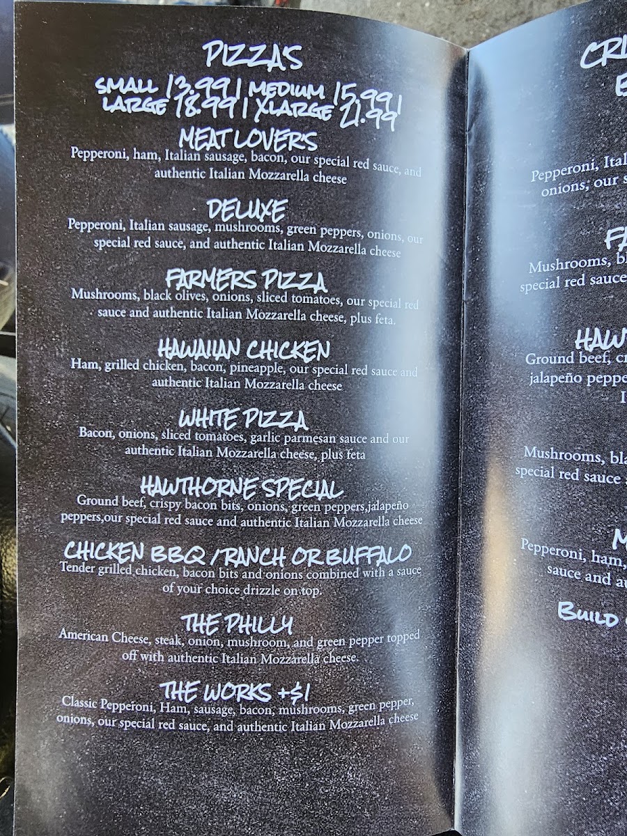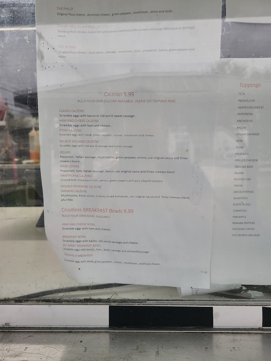 Original, pizza cheese, pizza sauce, onion, green peppers, jalapeños, ground beef and bacon.
