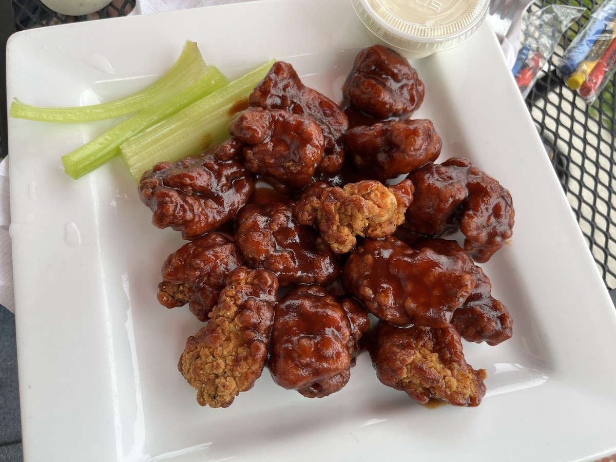First time visiting this hidden gem, and it won't be the last. Good beer selection, including a several rotating craft drafts and canned/bottle options. The crabby waffle fries were a great starter. I opted for Bayou wings (cajun & old bay) and my wife got Sweetfire (which felt like a hot honey mix). Both flavors were great and were fried perfectly. The staff were all personable and knowledgeable, allowed us to taste test before deciding what route we wanted to go, and were attentive on drink refills, etc. For wing night, the place did not have a large crowd, but that allowed us to have a good conversation with the staff. The pool table for $1/game was great. The bathrooms were also clean and well stocked.