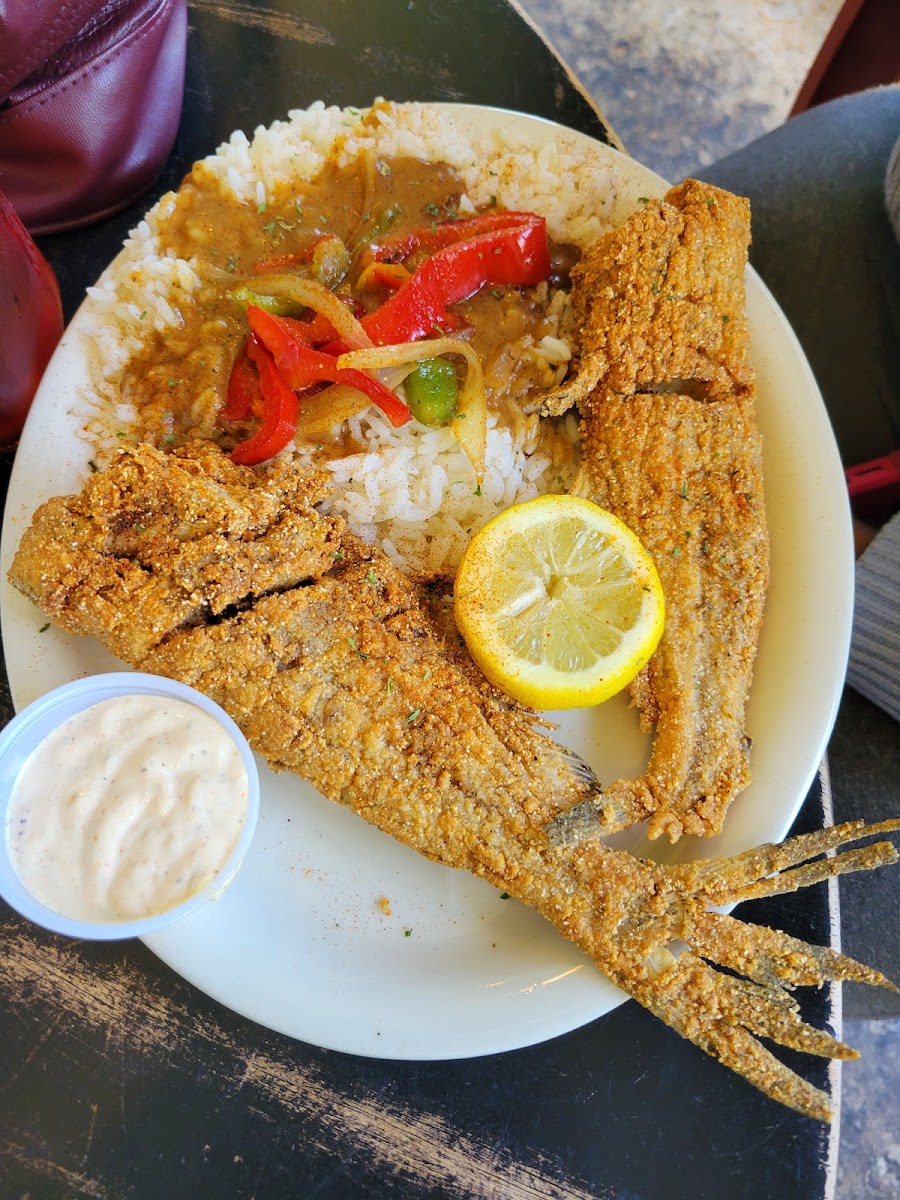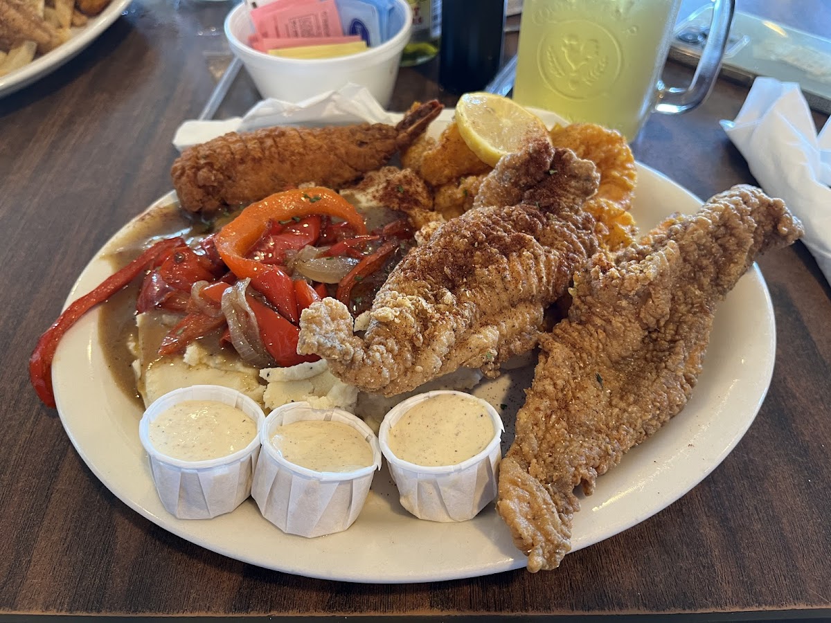 Waitress was amazing. I got the shrimp creole. They offered me toast or cornbread. I received both. The shrimp creole was ok. Got there before they opened had to waited for like 2 minutes. She got a shrimp entree. The shrimp was a great combination with the sauce. Seasoning on the fries had an interesting taste. We don’t really know what dishes to recommend but we will definitely be coming back.