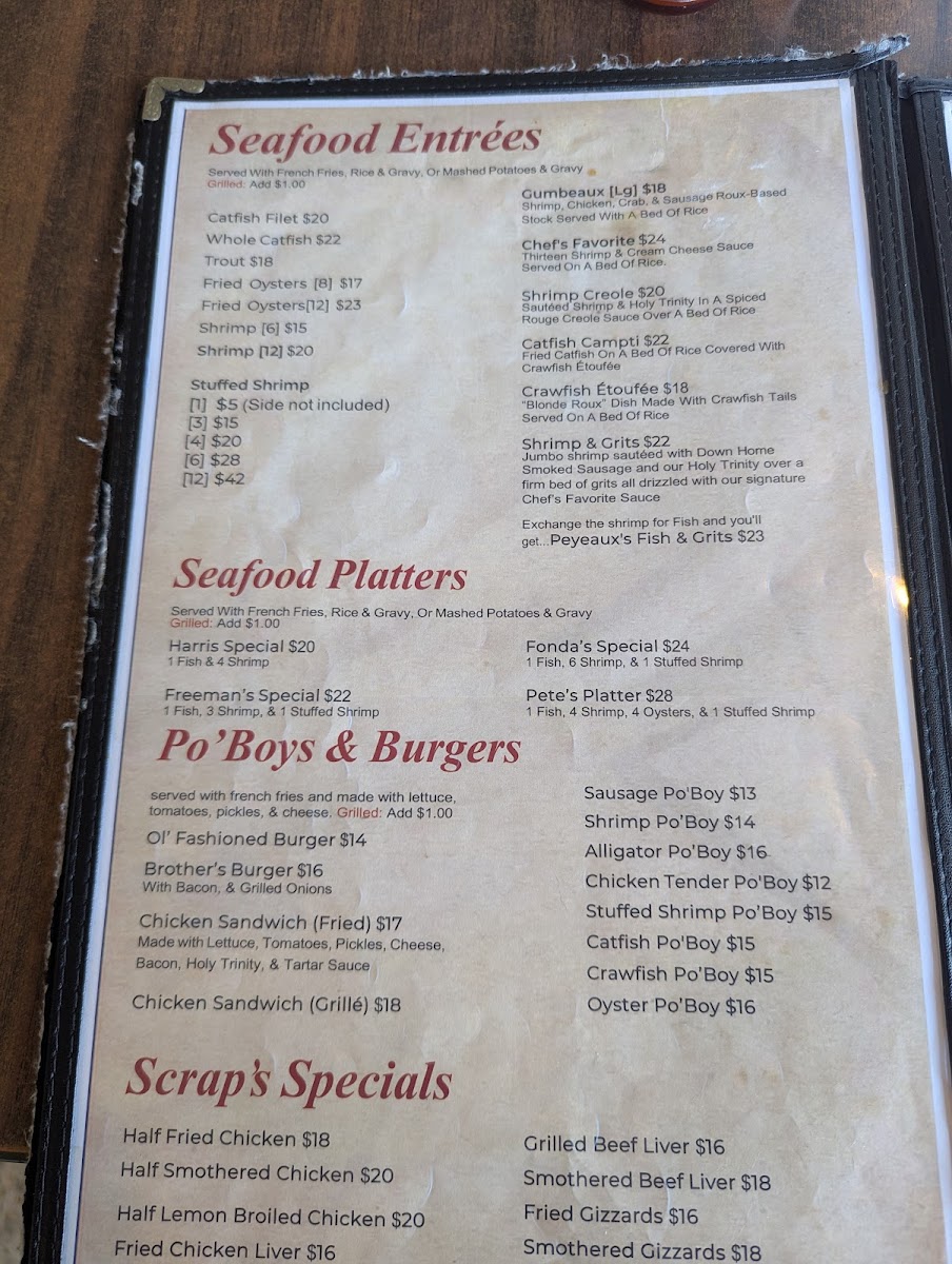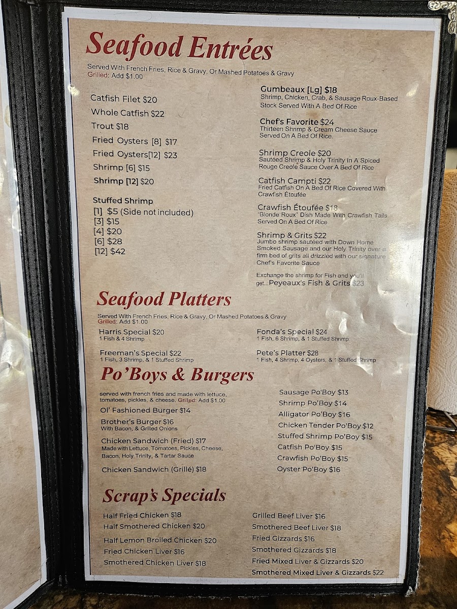 Sautéed shrimp & holy trinity in a spiced rouge creole sauce over a bed of rice