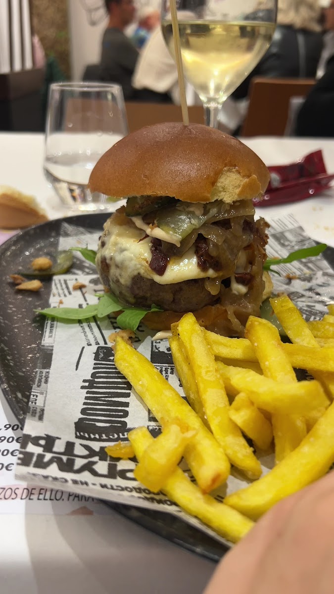Lo único que no me gustó fue que al llegar ya está el pan en la mesa, el cual te cobran aunque no lo comas. Pedimos la hamburguesa, la pluma ibérica y las croquetas de jamón, y todo estaba delicioso. La carne muy tierna y sabrosa, las croquetas cremosas y con un sabor auténtico. El servicio fue muy amable y atento en todo momento, y el ambiente del local resulta acogedor y tranquilo, ideal para disfrutar de una buena cena. Un sitio totalmente recomendable. Calidad precio muy buena.