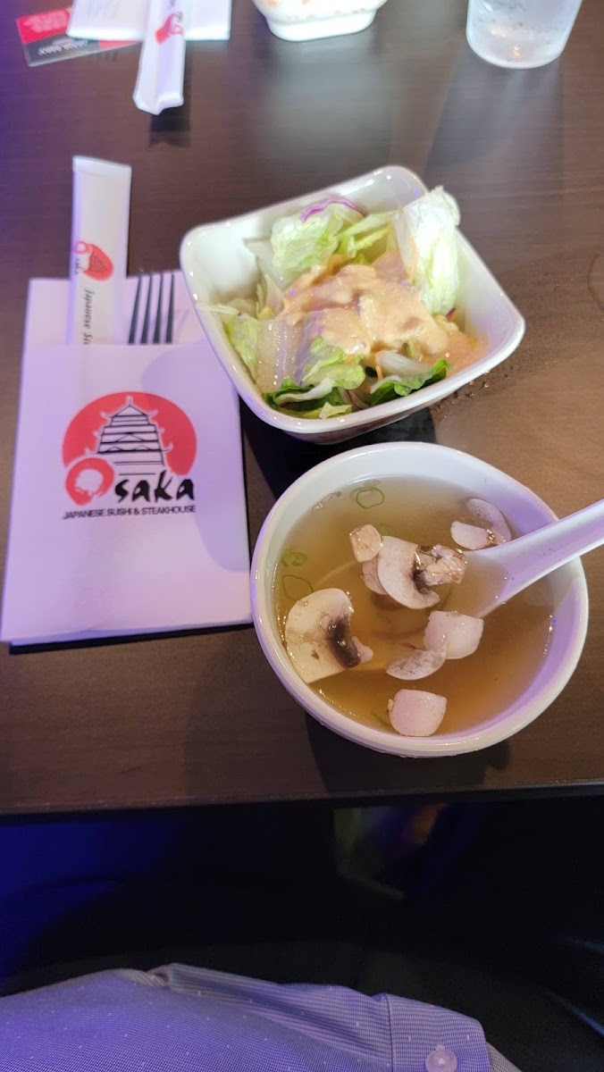 Great cleaning inviting atmosphere. We ate at 4pm but didn't feel like we were early for dinner or late for lunch. Typical ginger dressing on the salad which was nicely chilled snd crisp. Miso soup was too salty for my wife but good for me. I had the don katsu which was little over done but nice and crunchy. Pork loin can be so dry and pounder that thin, easy to overcook. My wife's steak hibachi was tender and loved the noodles. Fried rice maybe a little soft.