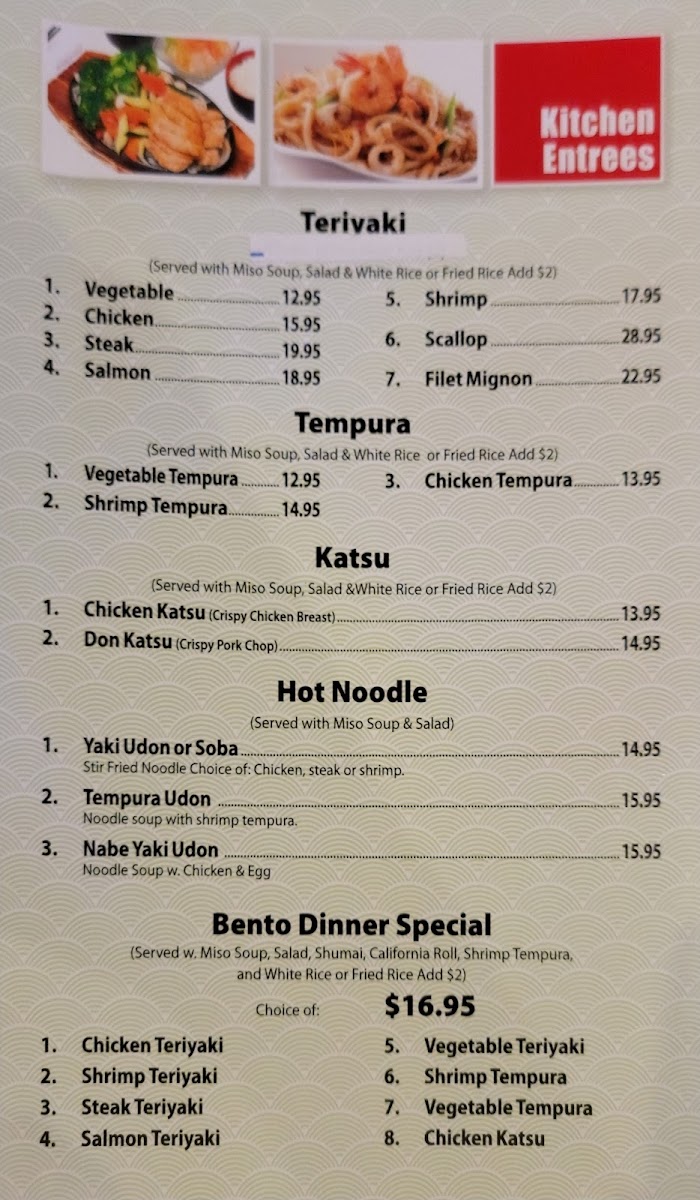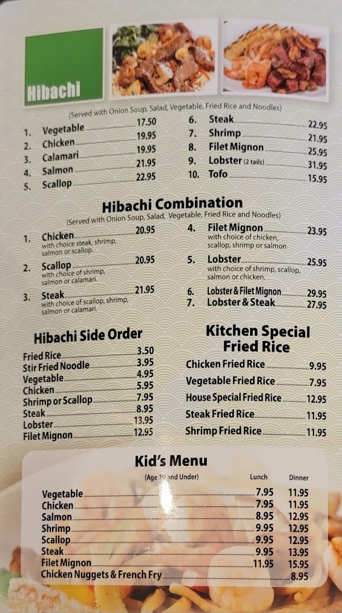 With fried rice, hibachi vegetable, and choice of soup or salad.