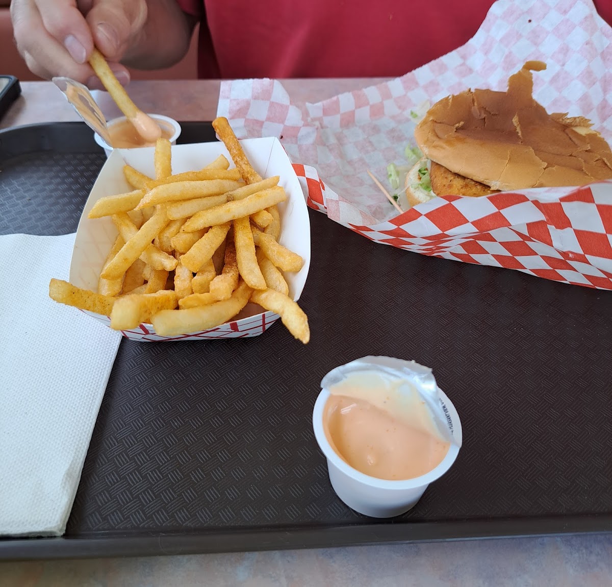 We were traveling through Parowan and decided to stop and get something to eat. We used Google maps to locate a fast food place, and Dairy Freeze was our first choice. This was also a nostalgic stop because there used to be a Dairy Freeze in our town years ago, and it was our favorite place to eat. There were several people dining in, so it must great local stop. The dining area was really clean, and the atmosphere was normal for a small town diner. The walls above the windows had photos of local activities like the rodeo, ball games, dances, etc. It was fun looking at them all and noticing how much pride this drive-inn had for their community. The day staff were really nice and friendly. They were all busy working and seemed to really like being here. After we ordered, they brought us our drinks (there wasn't a self- serve soda machine in the dining area). We didn't have to wait long for our food either. The food was good, and tasted reminiscent of quality fast food places. The fries were hot and crispy, and the chicken and hamburger were just right. My cheeseburger came with cheese, of course, a decent amount of pickles, lettuce, tomatoes, ketchup, mayo, and some mustard. I forgot to ask my husband what sauces he had on his chicken sandwich, but he said the amount of mayo was perfect for him. We started eating before I took photos of our food, so there is a bite or two taken out of our sandwiches. We really like this fast food diner and plan to stop by pretty much every time we come by Parowan. I highly recommend taking the time to come into Parowan during your travels along I15 and grabbing a meal here. You'll leave with a happy tummy.