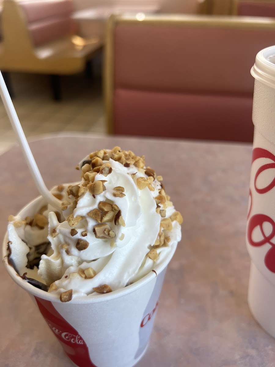 Friendly staff. Some new faces have made a lot of great changes and food comes out a little faster now. They also have an order ahead option that makes the lunch rush a little bit easier to get through. Food is good too with the cheesecake bite shake a favorite of my husband's.