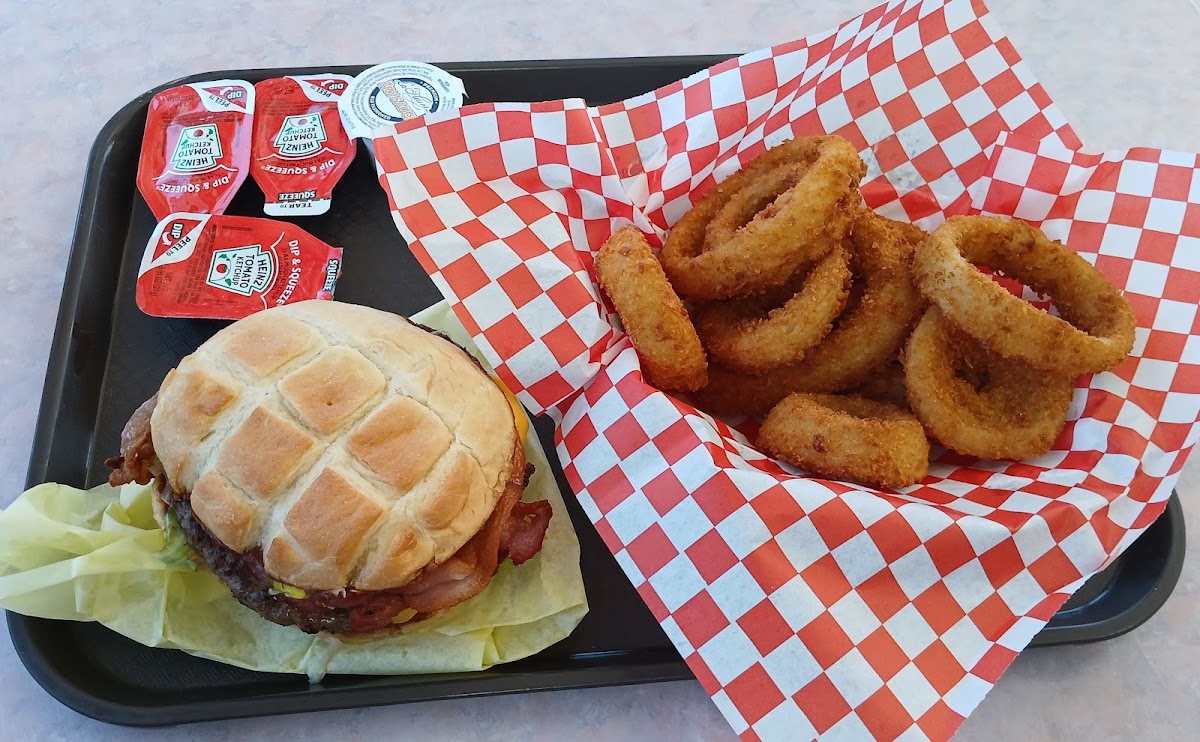 (Review of visit a couple weeks ago.) I stopped here at about 4:30 pm on an out of town work trip. I had not eaten since breakfast so wanted a big meal. I got a loaded burger and large onion rings. Very good experience, from the lovely young lady who took my order, to the great food, and the "independent junk food place" vibe. Highly recommended.