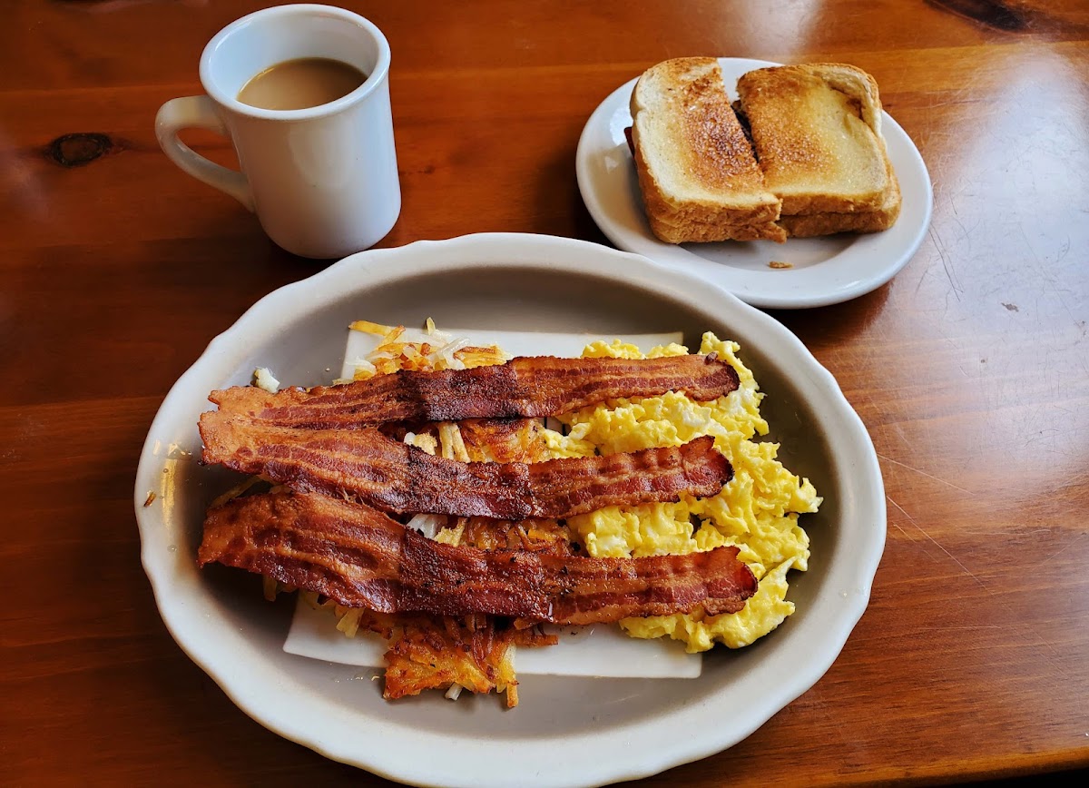 Penny's Erin Restaurant & Motel, located at 911 WI-83, Hartford, WI 53027, serves a general restaurant menu with a focus evident from its popular breakfast and brunch items. With 180 reviews, it maintains a loyal clientele. Patrons may encounter peak wait times of up to 15 minutes on Mondays between 8:00 AM and 1:00 PM, while the rest of the week remains relatively wait-free. Highlighted dishes include hearty Bacon Eggs Hashbrowns and Toast as well as Sourdough Toast, emphasizing a classic American breakfast theme. This venue combines dining with lodging options, making it a convenient stopover for travelers or locals.