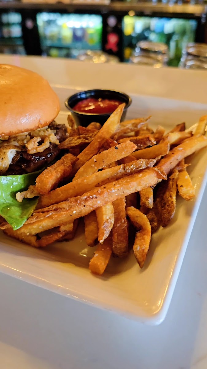 Yummy Yummmy!!! We had the best golden crispy fried cod that was absolutely delicious. The batter was light and well seasoned. A scrumptious thick piece of white flakey goodness. The fries were seasoned and just as crispy as the fish. The tarter sauce was very good. They had malt vinegar, which made me happy. Taylor was our server and made our experience very enjoyable. Friday fish fry is a special at $13. Go get some!!! Well worth it. The sax player was a nice treat.