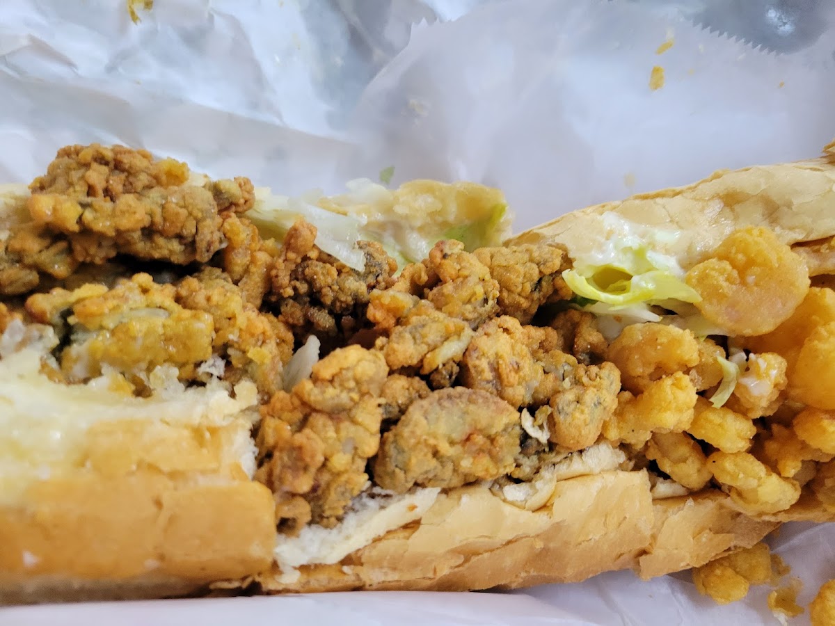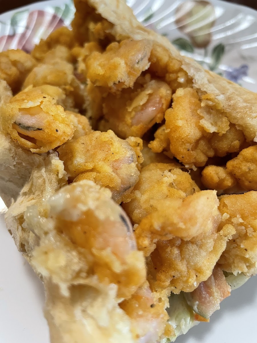 I ordered the shrimp poboy it was ok the shrimp wasn’t seasoned to taste I like it dressed the lettuce and tomatoes wasn’t fresh but it was ok I just took the dressing off and I asked for Hot sauce and ketchup on it opened it up and no sauce on it I still ate it but I won’t get it again.