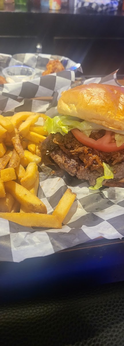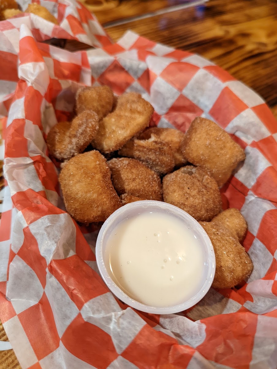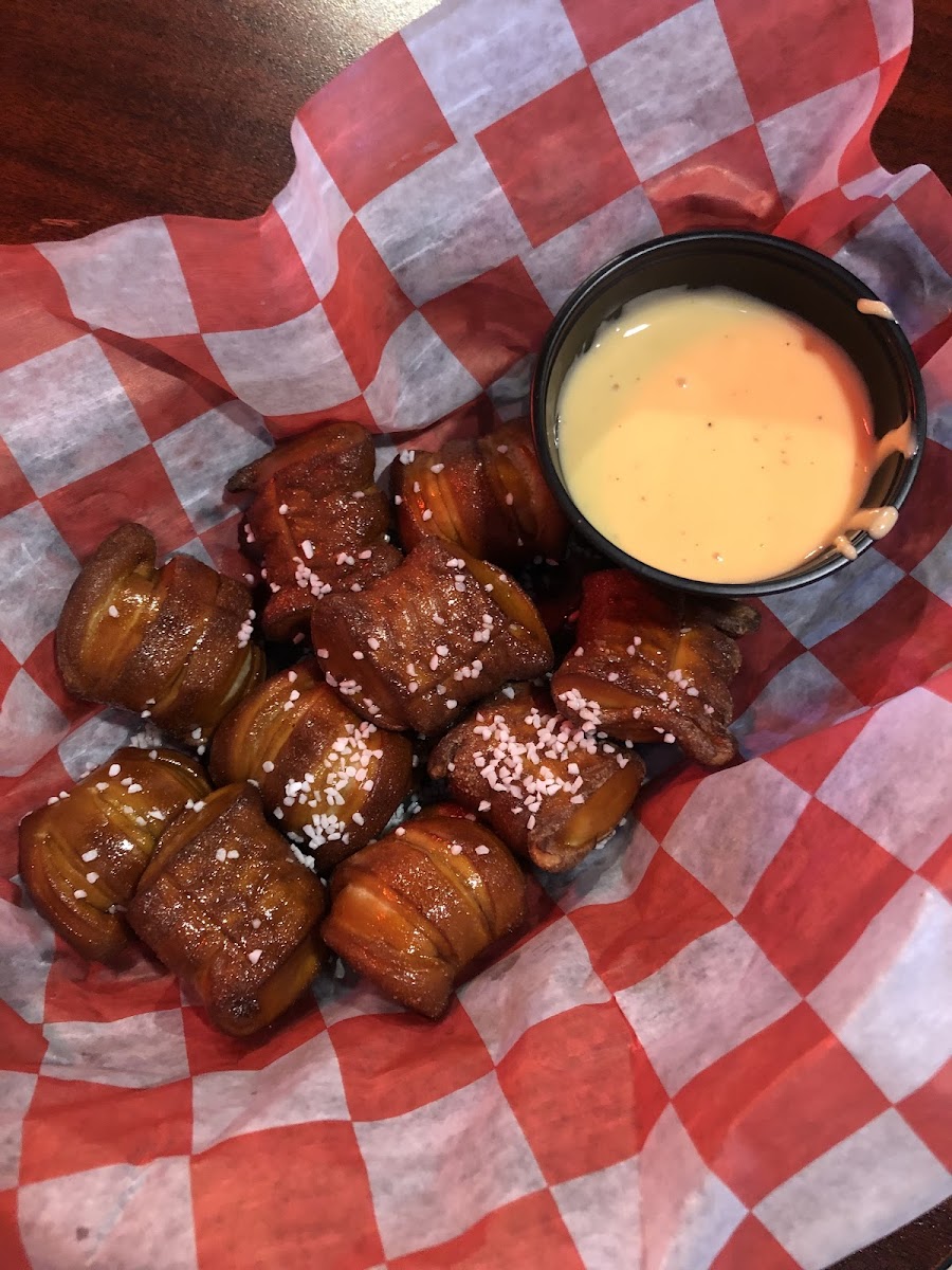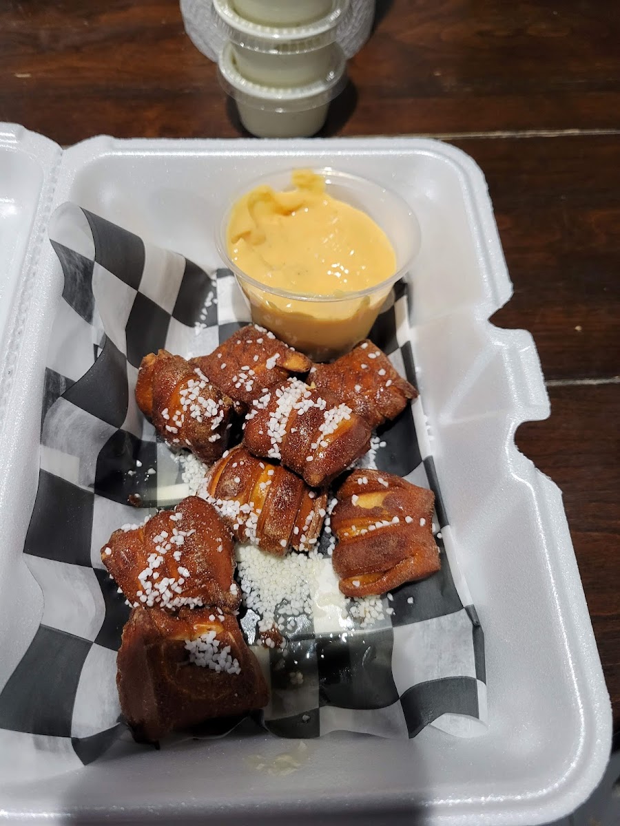 We went in mid afternoon, it was a cute small town bar, very clean on the inside, (my sister said that the bathroom “very clean and spacious”). They serve bar food. I got craft beer cheese dip with pretzel bites. They were 10/10. I had some fries and dipped them in the left over dip and that was also super good. I also got bone in wings with pops hot sauce. They were very spicy (I’m also very sensitive to spicy things) but delicious. Also 10/10. They have many different sauces for wings and I tried my sisters wings (she got garlic parmesan) and they were amazing. It’s a better choice if you don’t like spicy wings. There was only one waitress but she was very nice, and her lashes were on point. Her name was Megan. Definitely a place I’d recommend if you’re gonna be in the area. Don’t expect super fast food tho, it’s definitely nice if you want to chill and if you’re not in a hurry. But the food was so good it was worth the wait. There is a small fee if you use credit, so if you don’t want to pay that make sure to bring some cash. (It was super small it only added a dollar to my total).