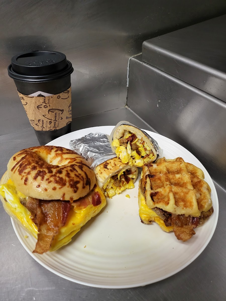 It's inside the gas station. Took me a minute, so I thought I'd help whoever is reading this. I love the waffle breakfast sandwich and my friend loved the breakfast burrito. Start your morning by treating yourself, you won't regret it!