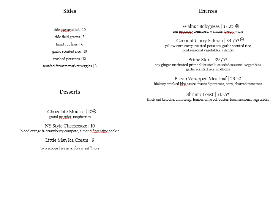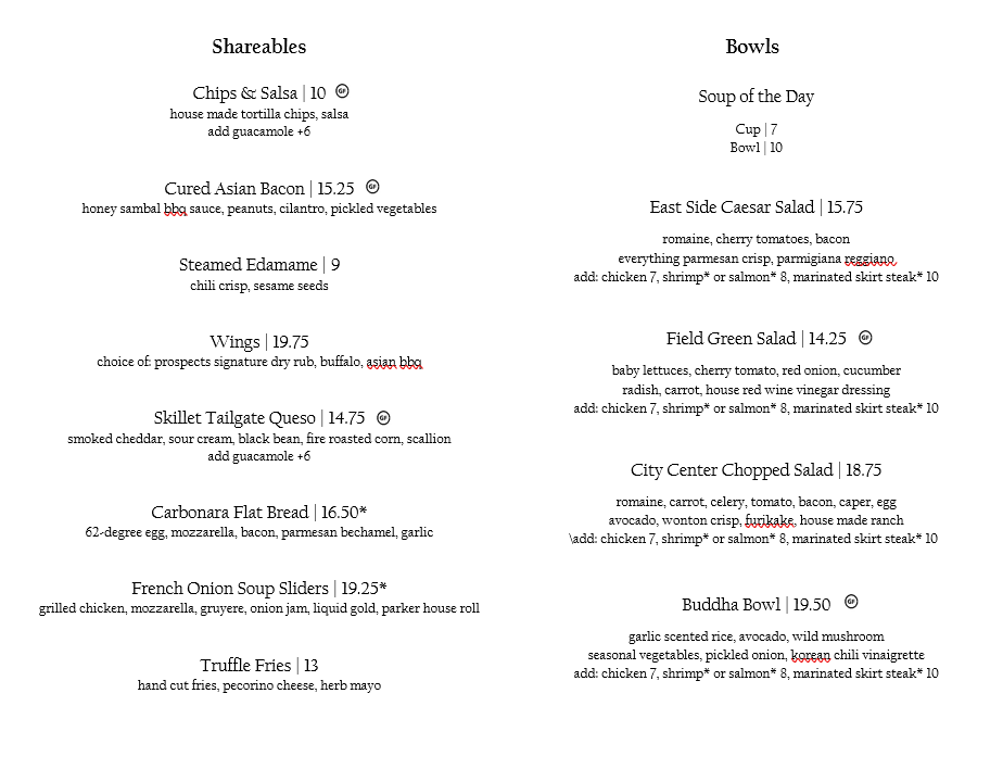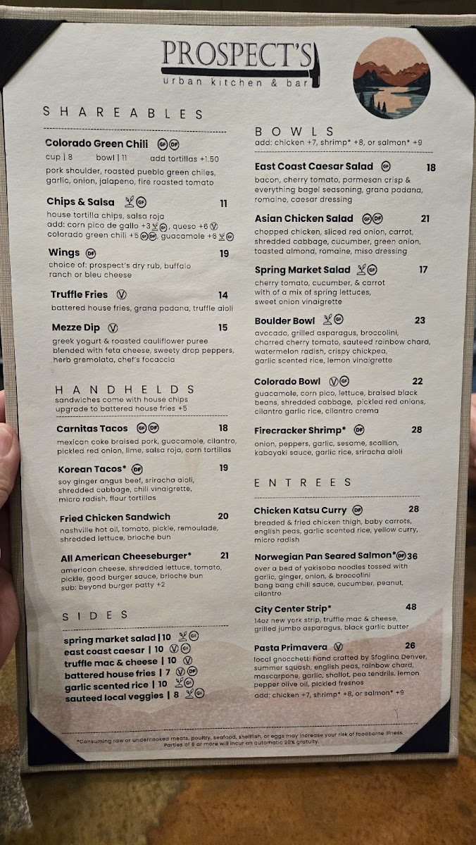 choice of non-alcoholic beverage & one of the following MINI YOGURT PARFAIT organic greek yogurt topped w/ berries MINI PROSPECTOR* one egg & one slice of bacon or sausage & one slice of toast ONE GREEN CHILE CHEDDAR BISCUIT & GRAVY