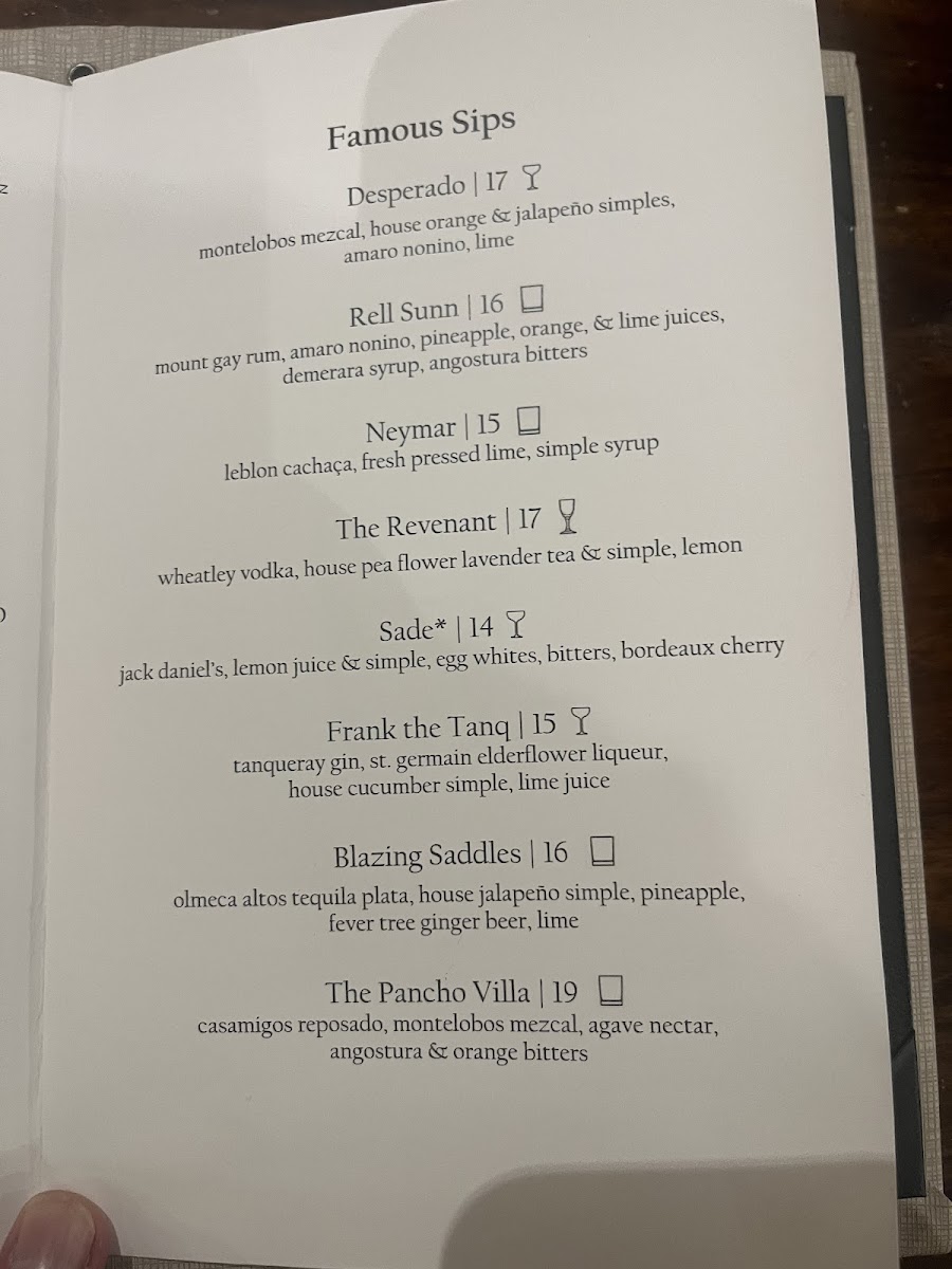 Montelobos mezcal, house blood orange & jalapeño simples, Amaro Nonino, fresh lime juice