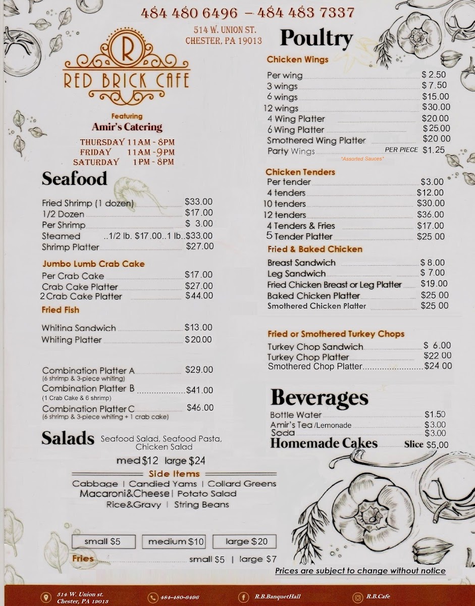 Cabbage, Candied Yams, Greens, Macaroni & Cheese, Potato Salad, Rice & Gravy, String Bean.