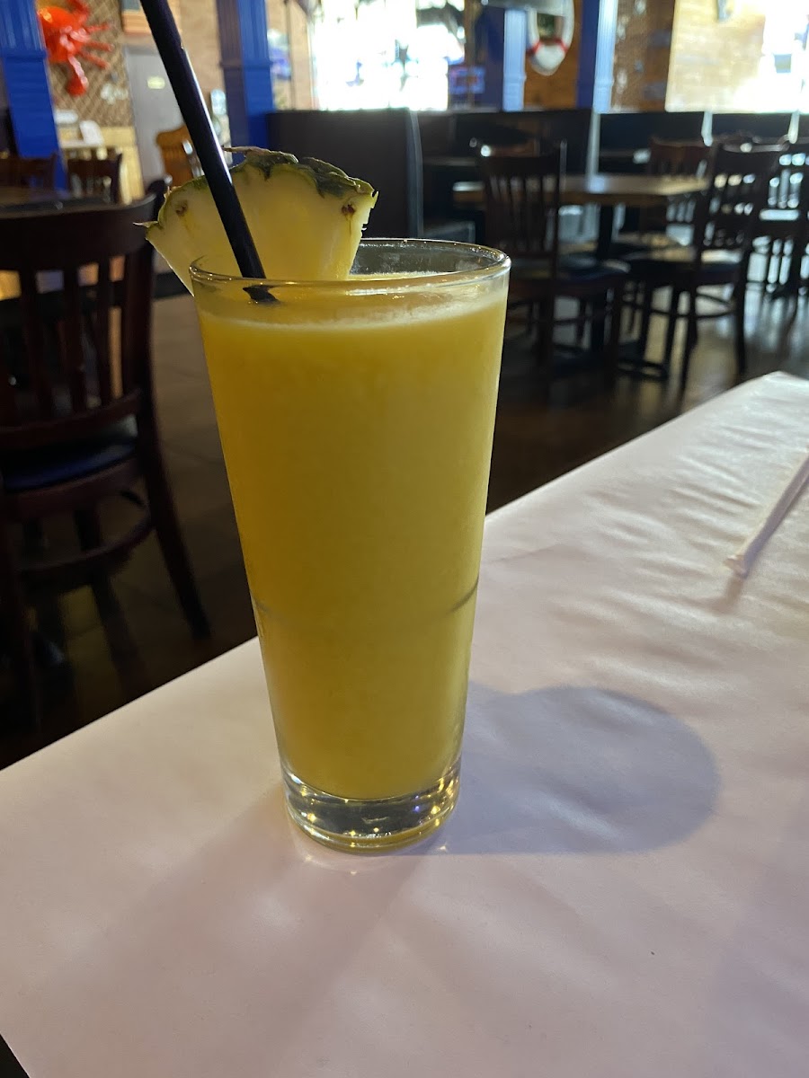 The food was good. There is marker writing on everything from the front door,to the tables, all the way back to the restrooms. There was a radio station on very loud along with commercials. The wait staff came by once only and just brought the check when we were almost done. You're probably going to be a bit parched waiting for another beverage.