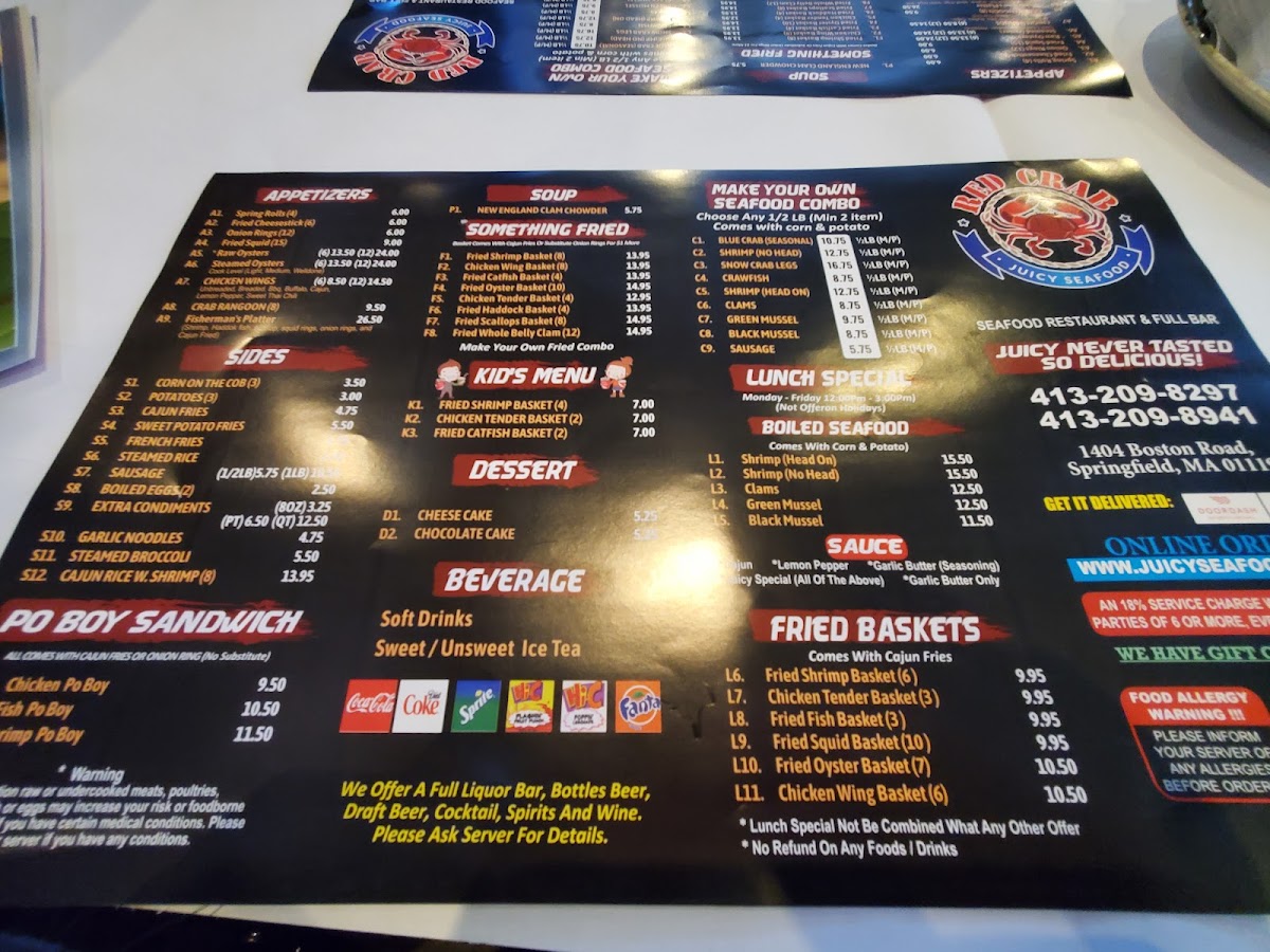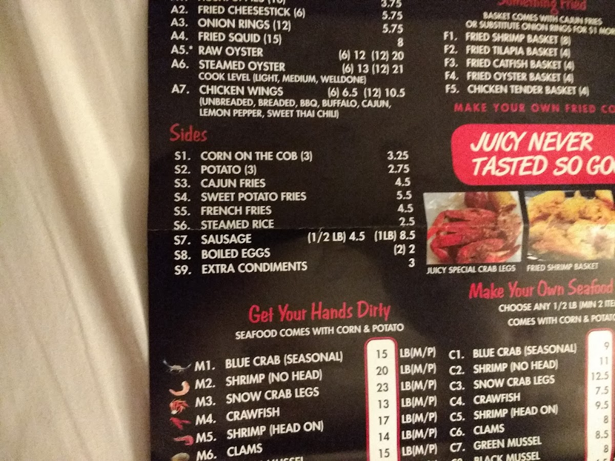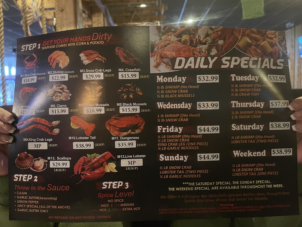 Served with 1/2 lb of each selected item, 1 corn and 1 potato for each 2 items chosen.