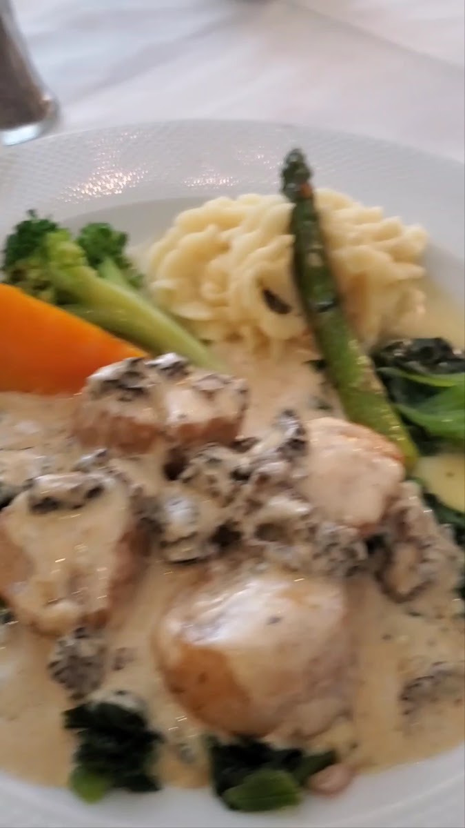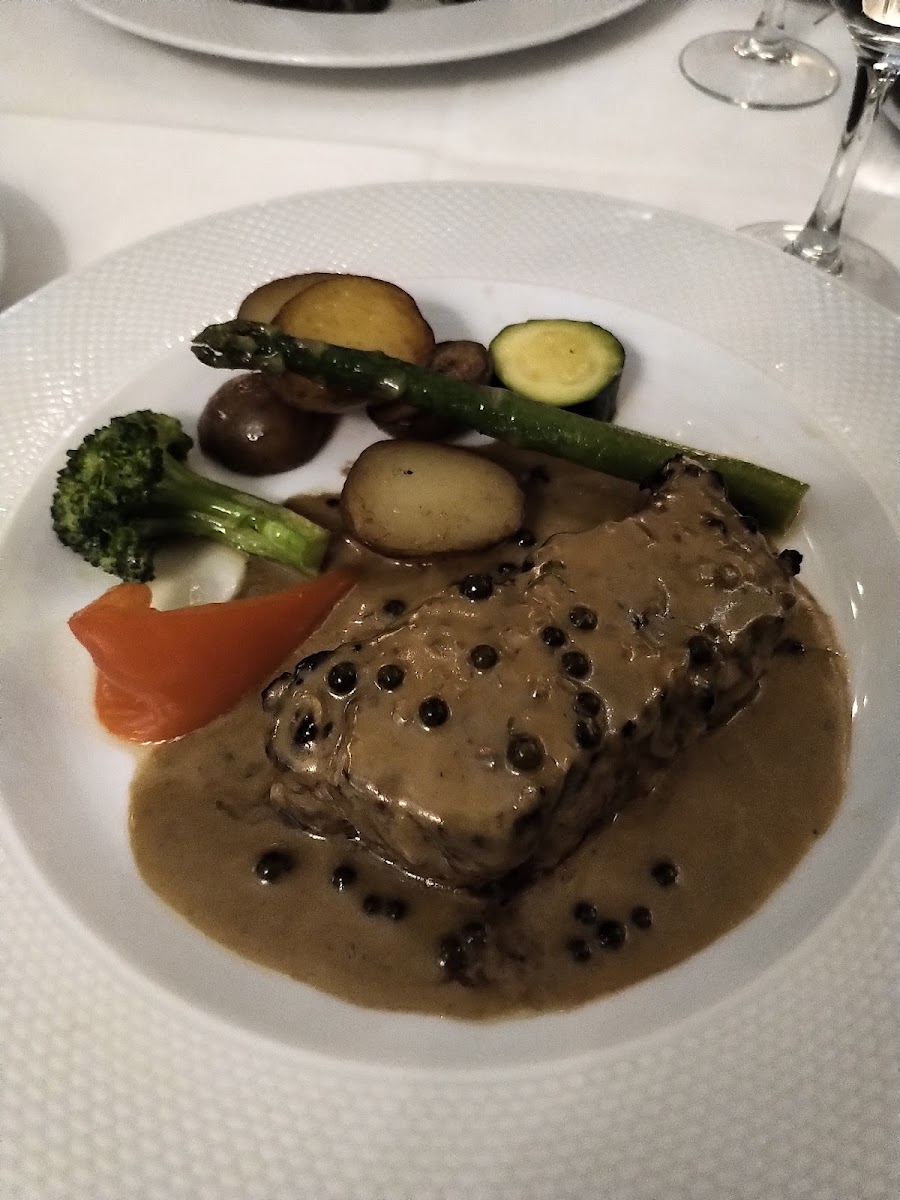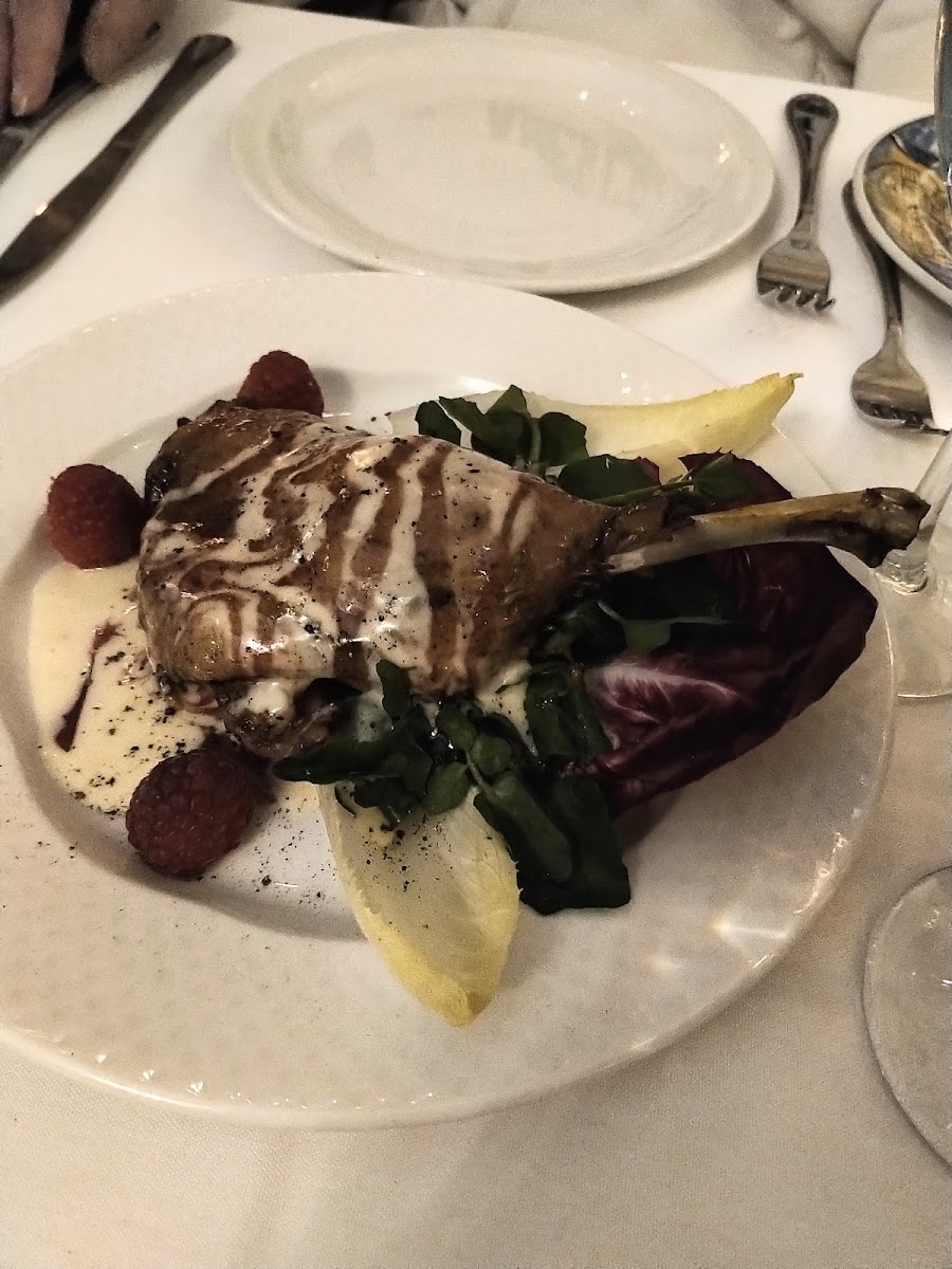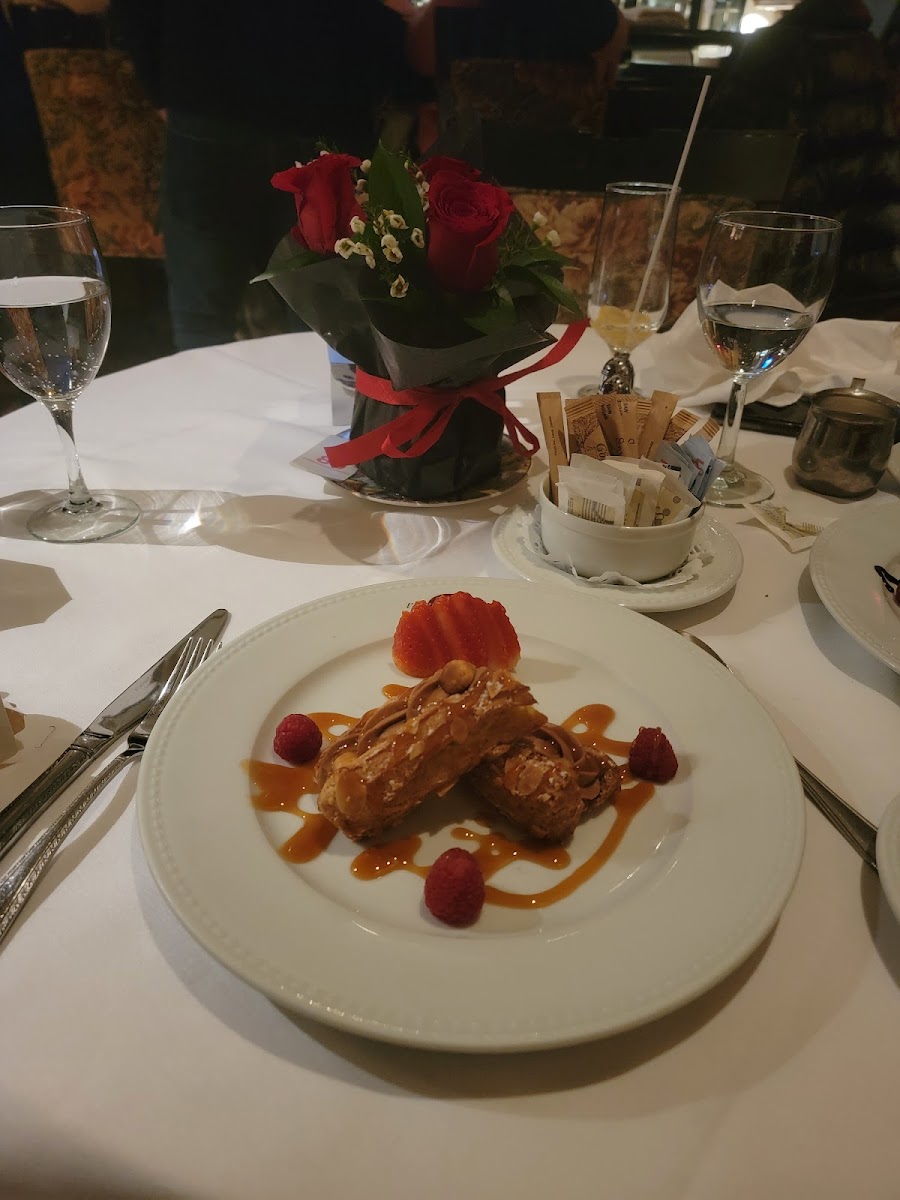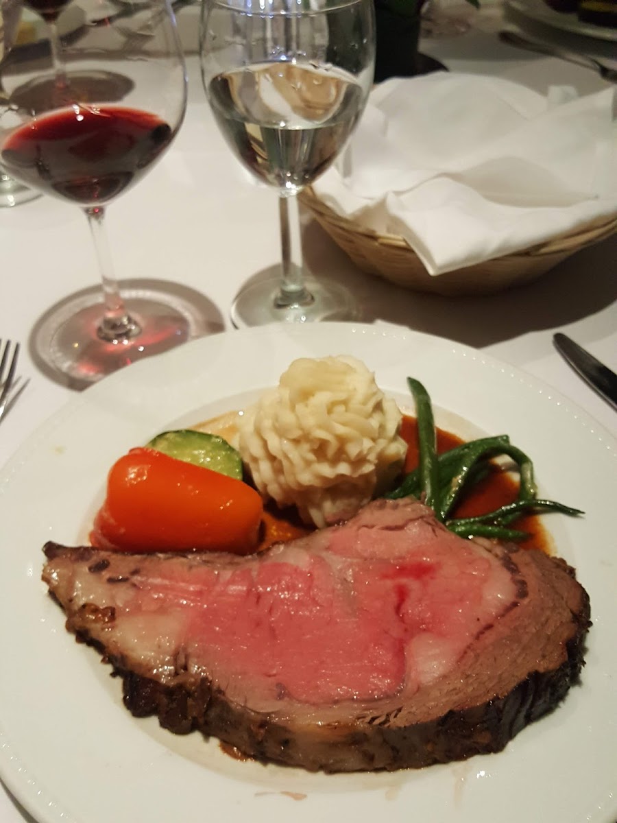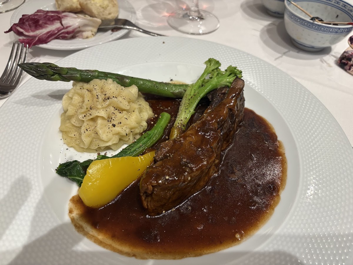 This is a smaller family owned French restaurant right downtown. We first saw this place walking home from another dinner and the owner was out front and chatted with us and told us he had been in business for 49 years. So we thought that we would give it a try during our stay. The owner himself and one other person were serving. We were first served individual rolls and bruschetta. Both were delicious. Amongst the five of us, our appetizers included the escargot in puff pastry, which was an amazingly delicious rich appetizer. I would've been satisfied to stop there. I did not. A couple of people had the French onion soup, which was apparently rich and very delicious. Our mains included my short ribs, which were served with a couple of spears of perfectly cooked asparagus and piped mashed potatoes. Other diners in my group had Rack of Lamb Provençale, fillet mignon, fillet mignon with pepper sauce, and Entrecôte sauce Bordelaise. They were all excellent. For dessert, the five of us shared two desserts…One was their chocolate crème brûlée…It was just OK. And a small apple dessert with some vanilla ice cream. That was good. Their wine list was quite extensive and expensive lol. The chef did come out at the end of the evening when we were leaving and asked us how we enjoyed our meals. I would highly recommend this restaurant.