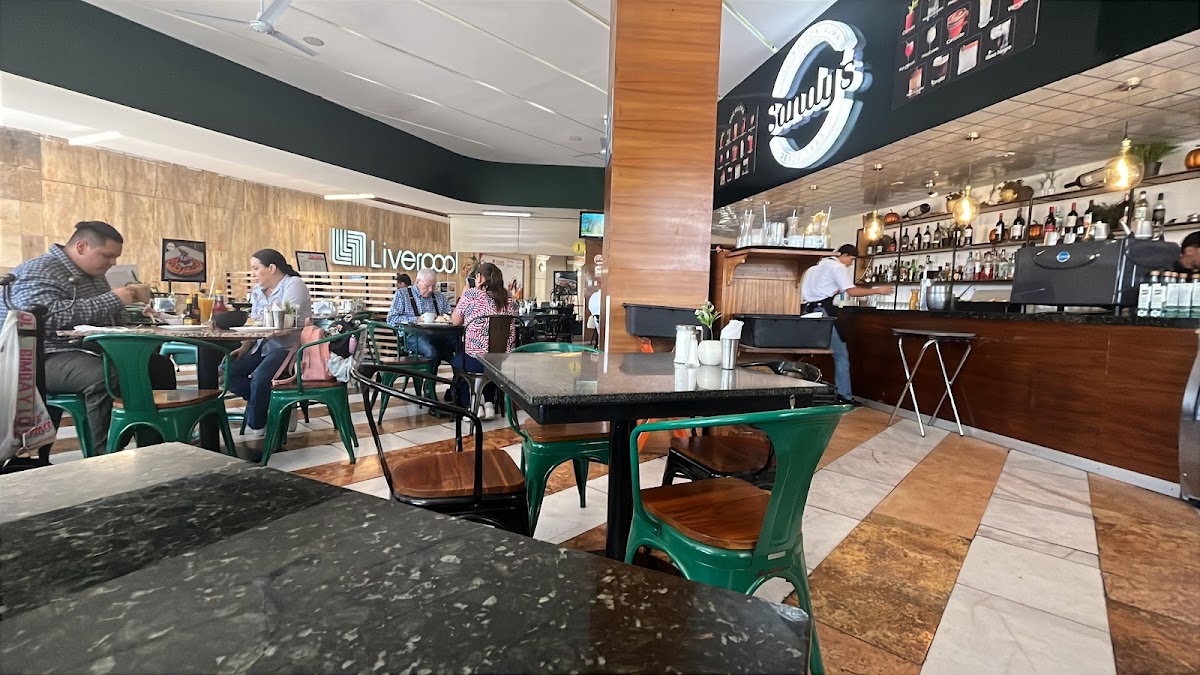 Restaurant Sandy's Plaza Patria is a restaurant located frente a Liverpool, Av. Americas 1950 Local 5 Zona J Plaza Patria, Planta Alta, Jacarandas, 45160 Zapopan, Jal., Mexico. The venue has 2527 reviews. Popular dishes featured on its menu include Chilaquiles Suizos, Sopa de Tortilla, Enchiladas Suizas, Papas A la Francesa, and Chilaquiles Divorciados.