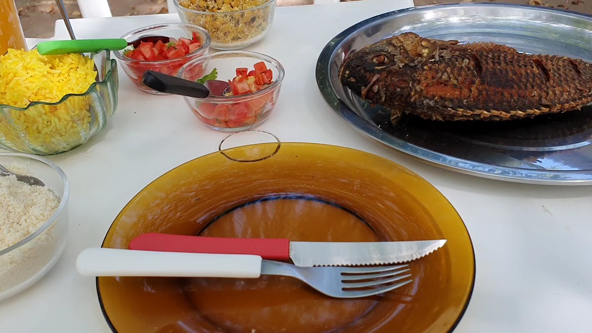 1 – Ambiente – Ambiente bem simples, mas que traz uma energia super positiva. Almoçar embaixo das mangueiras, em ambiente aberto, isso não tem preço. 2 – Refeição – A avaliação foi realizada no prato “Peixe frito na hora”. O prato é muito bem servido (na ocasião ofereceram a opção de R$ 40,00 e a de R$ 50,00, acabei não perguntando a diferença). Pedimos a opção de R$ 40,00 onde comeu bem duas pessoas. Tudo muito saboroso, desde o arroz com açafrão (acho que era) desde o peixe frito (tilápia) inteiro. Realmente é muito bom. Vinagrete simples, somente com tomate (poderia ter cebola..kkk), farova (uma delícia) e farofa de feikão. Tudo muito bom, bem feito e saboroso. 3 – Localização – Afastado um pouco da cidade. Conheci através da indicação de um amigo. Entretanto, vale a pena andar um pouquinho para conhecer o local. 4 – Atendimento – Atendimento honesto, onde no final, o dono compareceu a mesa para perguntar se estava tudo bem. 5 – Preço – R$ 40,00 o “Peixe frito na hora” com acompanhamentos onde comem duas pessoas. Uma “pechincha”! 6 – Conclusão – Moro em Sorocaba/SP, cidade de 700k habitantes. Sinto muita falta de um ambiente desse tipo. Comida caseira, local simples, sabor do interior, comer embaixo de uma árvore. Experiência impar. Super Recomendo!