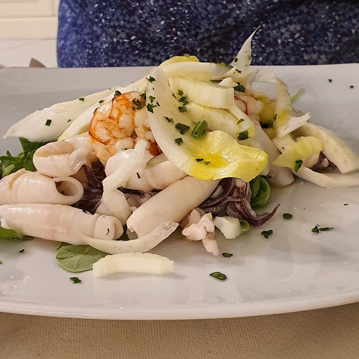 Piatti di pesce ottimi per gusto, qualità del pescato, quantitá. Servizio perfetto e personale accogliente. Ottimo rapporto qualità prezzo.