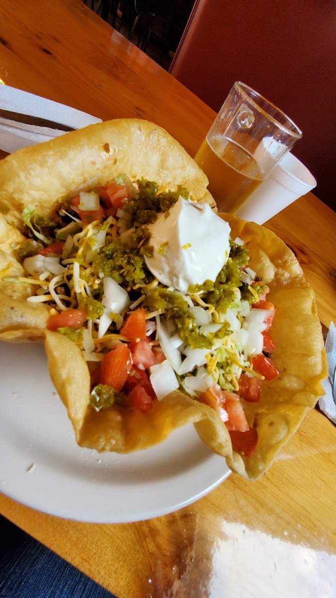 I popped in on a whim while driving by. Total hick bar vibe (I mean it in the nicest way possible): dusty lot full of side by sides, dead things on the wall, and country playing. I heard the bartender greet many by name. I asked for a Bud Light lime, which they don't carry but the server gave me some lime slices for my draught beer. The menu is simple and the taco salad jumped right out at me. The presentation was fantastic but the seasoning was underwhelming. Service was great and worth the drive. Looking forward to another visit for a cold bevvy on the patio
