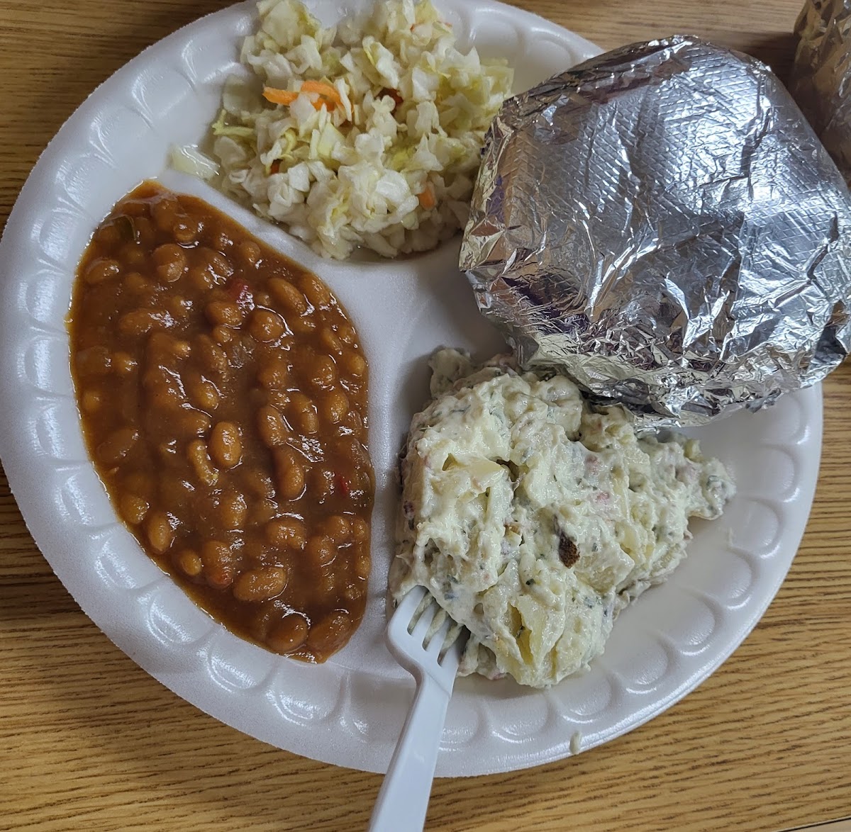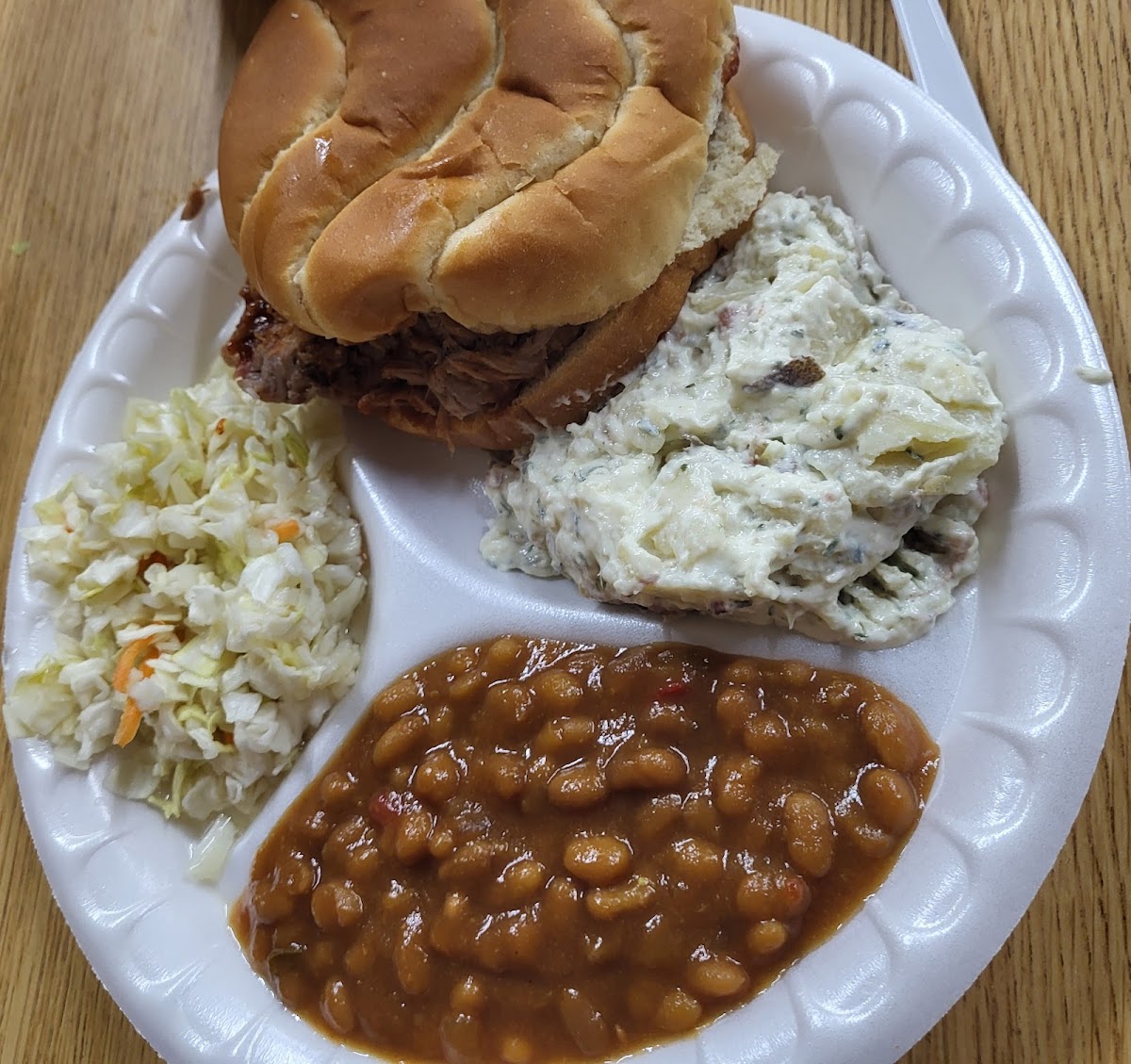 Some of the best BBQ that I've had in quiet awhile. A true test of any BBQ is how it tastes without anything-just meat. I took a plug right out of the package. Wow, great, smoky flavor. The sauce compliments the meat as it adds another level to the taste. The baked beans & mayo slaw put the meal over the top. I will definitely sleep well tonight as my taste for BBQ has been satisfied for at least tonight. Leftovers are for another day - something to look forward to.