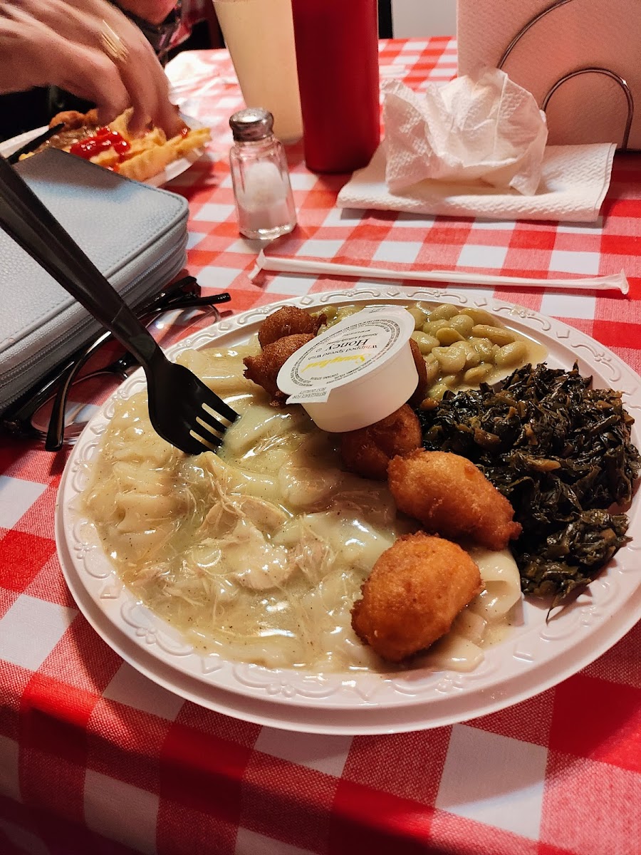 This restaurant is a true hidden gem. Not only is the service amazing and genuinely unique, but the food oh my God the food is outstanding. We had a BBQ plate and a chicken dish, and both were absolutely incredible. The meat was flavorful and perfectly cooked, the fries were done just right, and you could really taste how fresh everything was. The cherry on top was the pound cake, so fresh and fluffy it practically melted in your mouth. We honestly expected to pay an arm and a leg for food this good, but it was surprisingly affordable. If you ever have the time or find yourself nearby, go. I promise you won’t regret it for a second.
