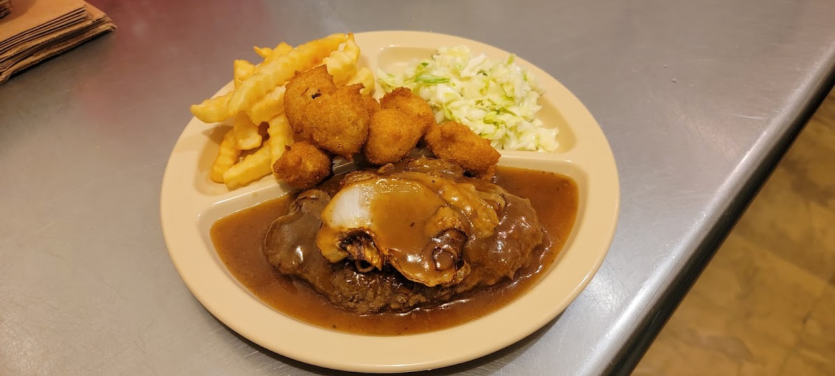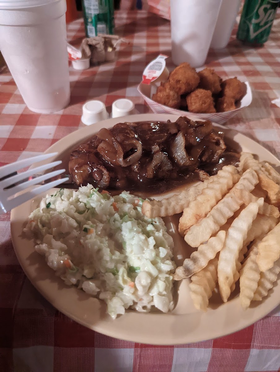4.5 stars.. not for everybody but definitely a unique experience. Hush puppies were the best I've ever had, but still not a favorite of mine. If you come here, the chicken is a must 10/10! The barbecue is good and the sauce is just right (8/10). The coleslaw's crunchy but needs more flavor(4/10) and the fries are nothing to write home about. My daughter's burger looked really good and the shrimp was good(7/10) but small. Your menu maybe incorrect, but still great prices.