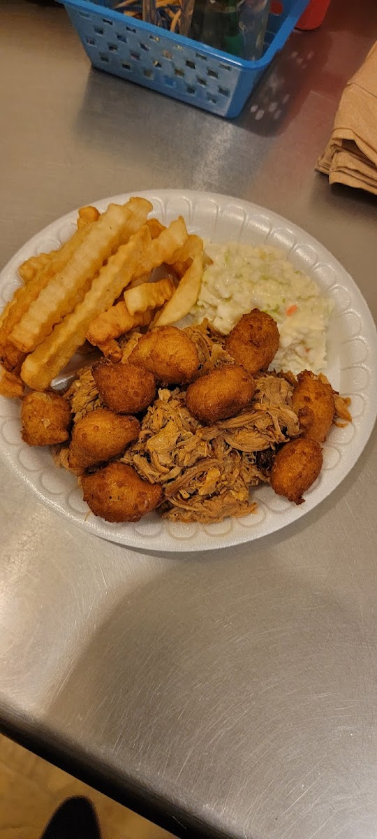 1st time here tonight with the family! Tried some catfish that just melted off the fork! Hushpuppies are the best! Well worth the wait for that BBQ!!