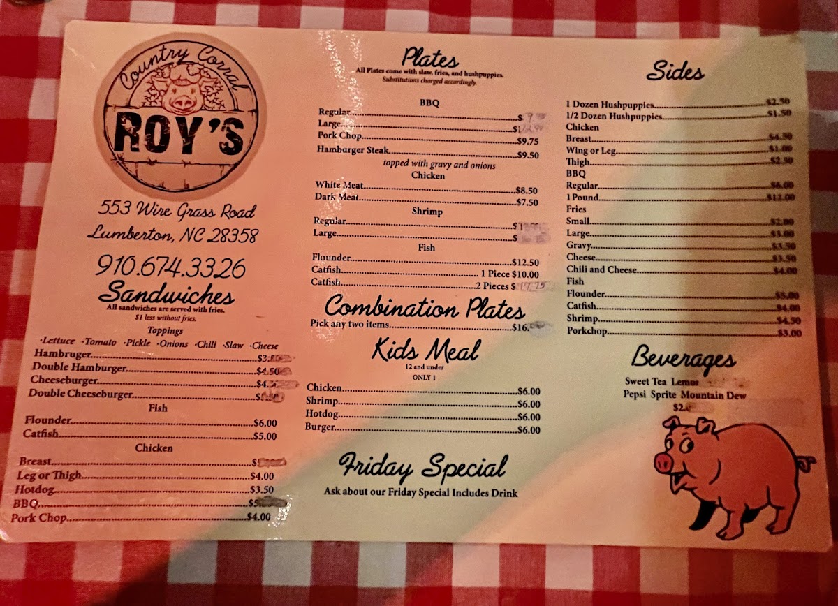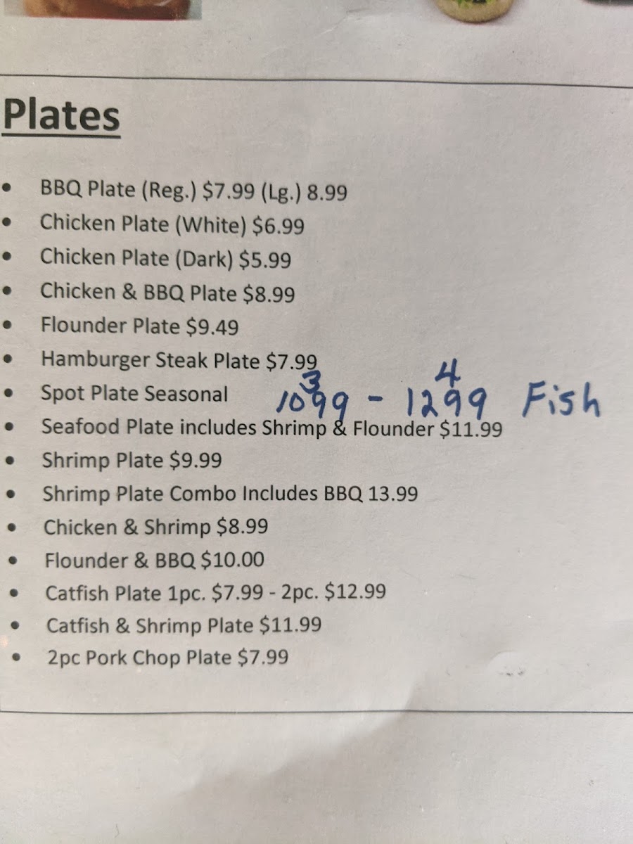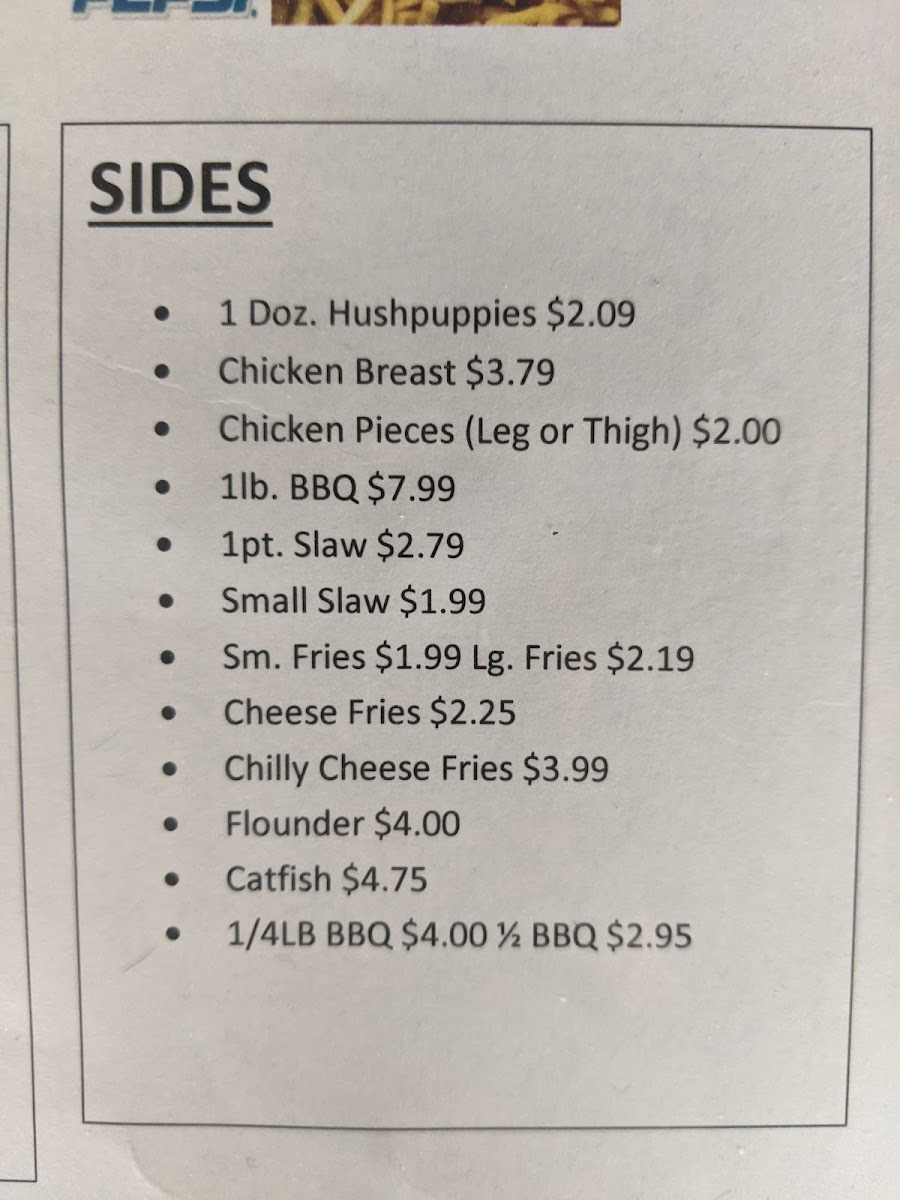 Pick any 2 regular menu items with a side of hushpuppies, fries and slaw.