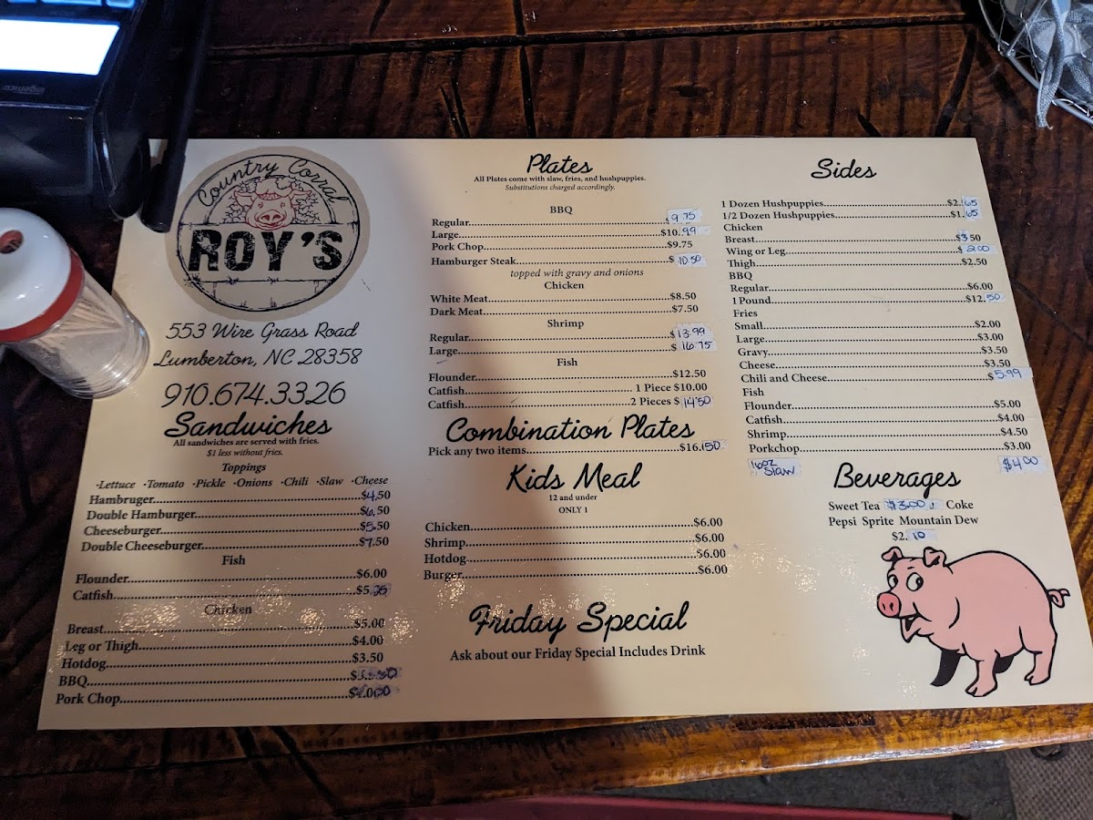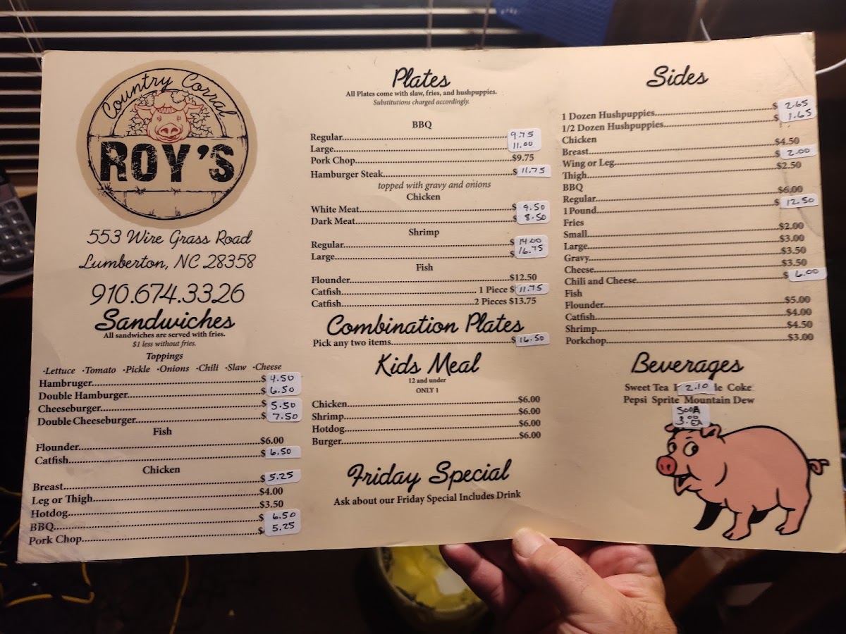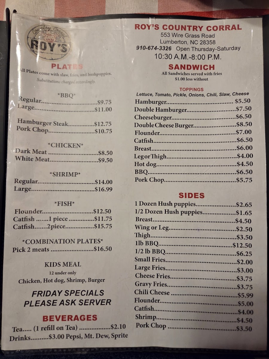 Pick any 2 regular menu items with a side of hushpuppies, fries and slaw.
