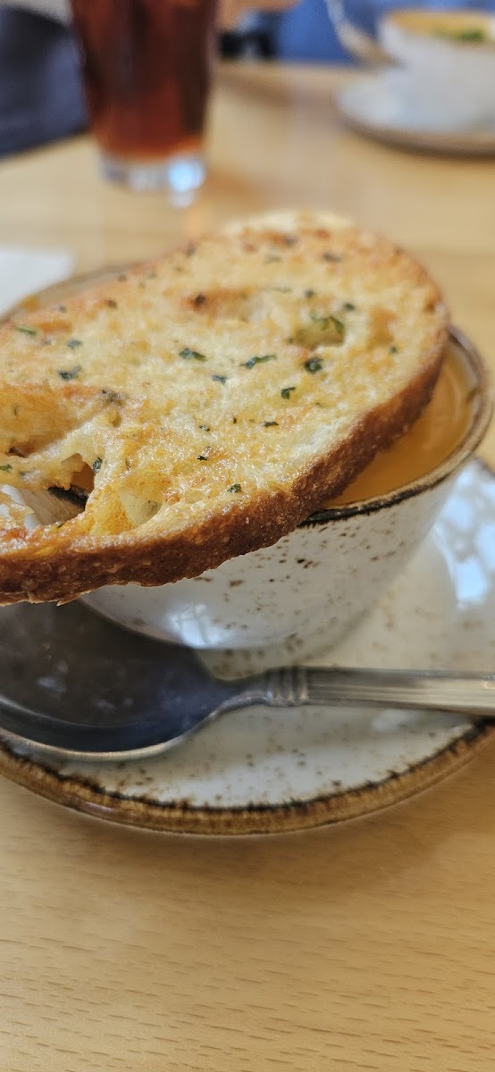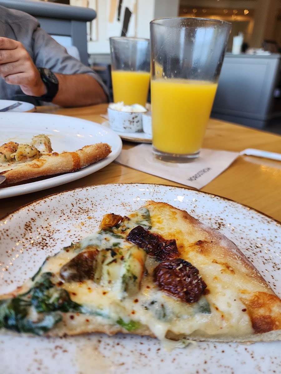 Lobster bisque soup and Handmade shrimp scampi pizza have to definitely taste! Because rich taste of lobster in a creamy, smooth base, soup typically combines a rich seafood broth with fresh lobster meat, often enhanced with cream, butter, and aromatic herbs , also fresh orange juice!