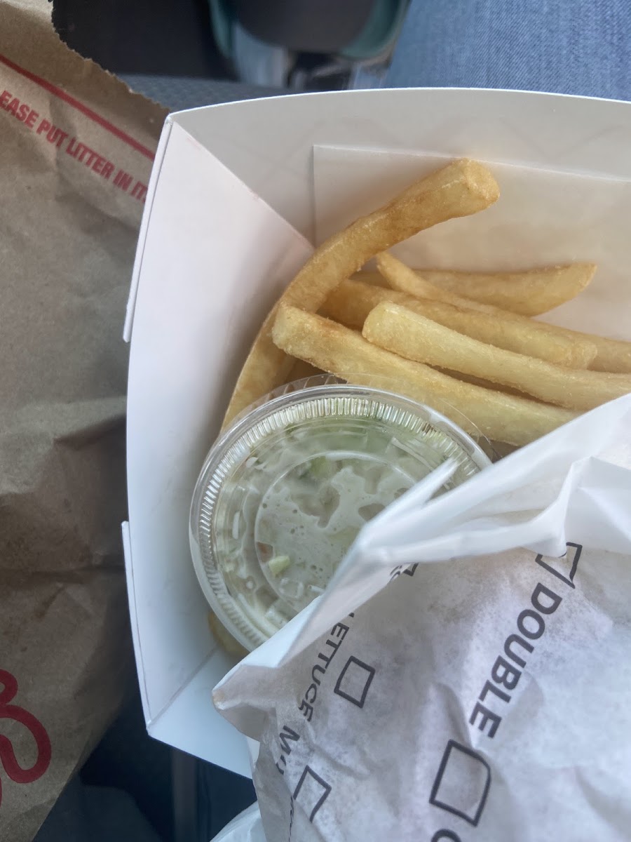 An interesting takeaway with no screens inside. Quite difficult to read the menu and pricing. Felt like I was stepping back in time. Would never see this in Europe! The cheeseburger was pretty good and tasty, and well worth the $6.59