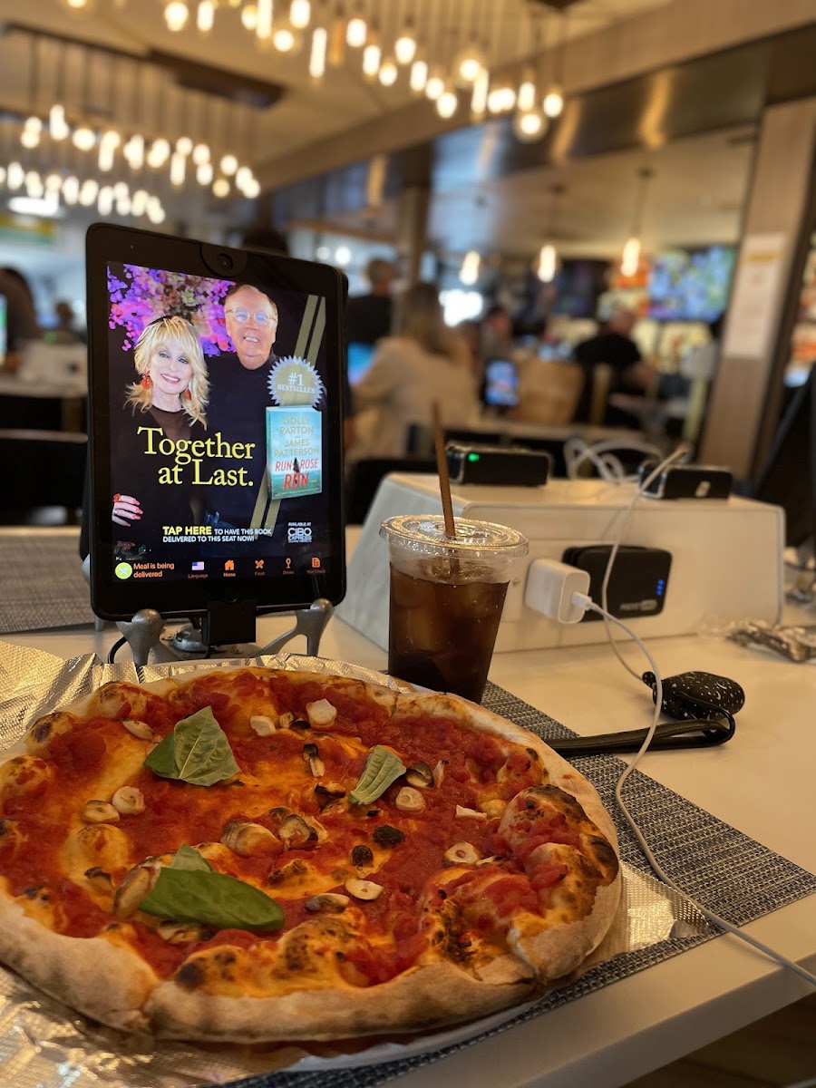 Stopped in for a tall beer and some fresh pizza before our flight back home to Charlotte NC. An oasis as we are here early and this terminal is amazingly fast. In and out. I would also rate this terminal five stars. Highly recommend the entire experience! We will be back!