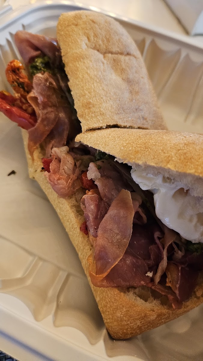 Had a bacon, egg, and cheese pizza with a coffee at LGA and it hit the spot. The crust had a nice char, cheese was melty, and plenty of bacon on top. The egg gave it that breakfast sandwich vibe, and with the coffee it made for a pretty solid airport meal.