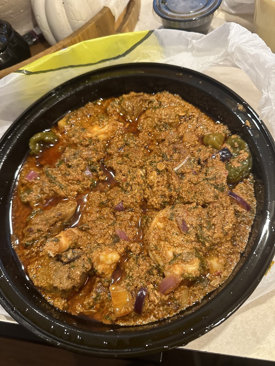 me and my friend got the egusi soup, fufu, and jollof. very good, i loved the soup and fufu and she loved the jollof. the hot sauce was also awesome, to be honest i wish i got more of it! nice and friendly family, and very large portions for a good price. i can’t wait to try the peanut soup, will be back again!