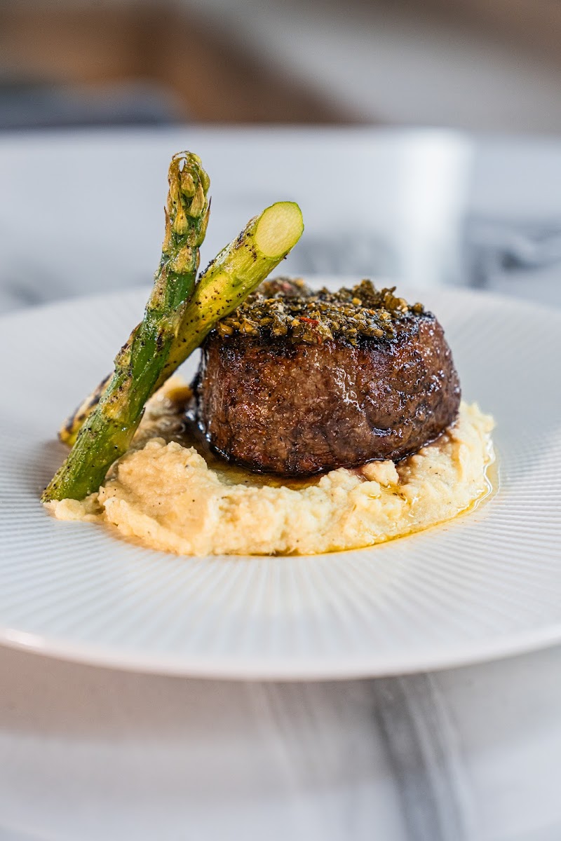 Dinner at 7pm will beat the crowd. Step off the elevator and wow! The feel is very upscale and current. We started with the Pollo dumpling and they were very good. The Old Fashion presentation = superb. I had the ribeye - DAAANNNG! There is an art to cooking a good piece of meat and the Chef NAILED it. Our party also had the Filet - another excellent piece with flavor flavor flavor! The lobster risotto amazed! Lobster was tender and tasty. We were also celebrating a birthday and they treated us to a small treat. The chocolate cake with fruit, ice cream and small chocolate chips was my favorite. This is now the place to enjoy an experience in fine dining with a pleasant / energetic vibe. The music was just right, the right volume, the right tempo, the right energy! Please come see for yourself, they have made some very recent changes. It is very evident! KK took his time to come over and talk with us for quite a while. Johnny & Cesar were our servers… fantastic, prompt and attentive. Parking is great with the garage right there off the street by the restaurant. Valet is available.