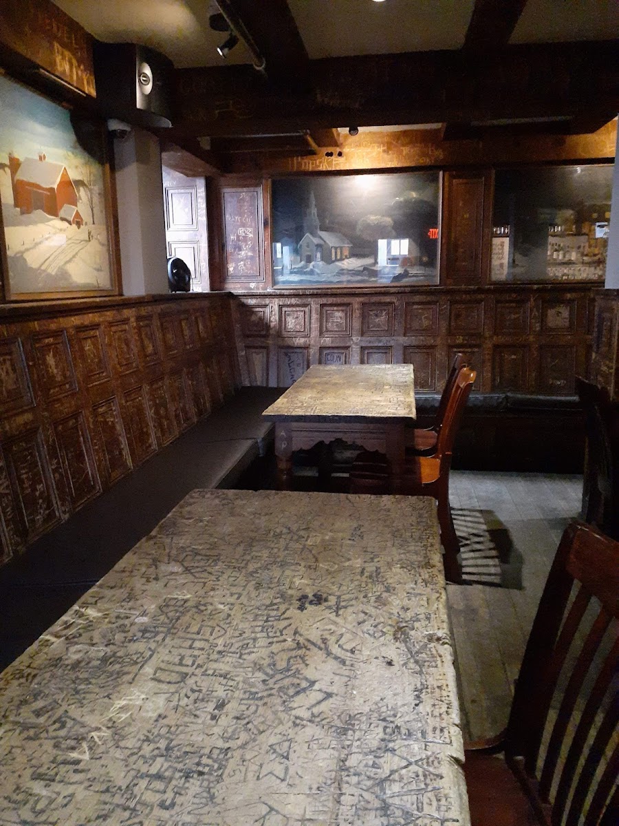 Extensive menu, a choice for everyone Popovers were a pleasant surprise to open the meal (instead of bread). Honey butter was excellent Had the Redneck Smashburger (with brisket because I could ) and Chicken Marsala, both highly recommended Service was quick and attentive Downstairs so a little "close" but still a fun space, cozy bar with hundreds of names carved into the walls... Part of the Lincklaen Hotel, built in 1835. Cool spot.