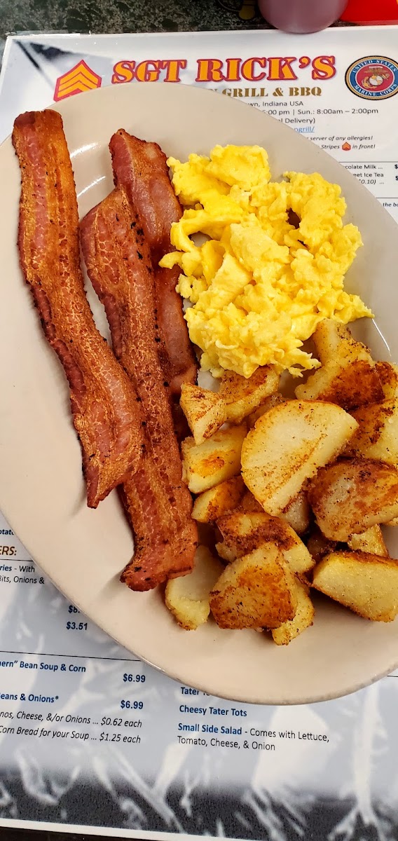 THIS IS A MUST TRY: HIDDEN GEM ALERT!!! SGT Rick's American GRILL & B B Q Hands down the absolute best breakfast I have had in years! Looking over the menu this morning, and there are sooo many great items to choose from ALL day long. Please give this place a try, I promise you won't be disappointed and you will be planning a second trip back before you pay for your meal!! It was so nice to eat at a place with such great customer service and in an atmosphere that, without a doubt honors those that have fought for our freedoms!