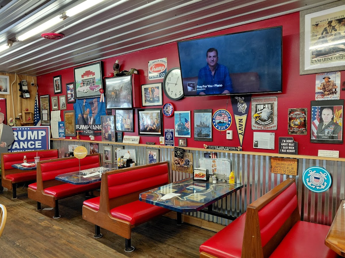 This restaurant is the real Devil Dog Diner. It is the perfect Marine Corps cave with all your love me, Marine Corps vibes. Then top the John Wayne atmosphere off with awesome BBQ items and comfort foods. The brisket, ribs, pulled pork, and burgers were served with great fries, baked beans, potatoe salad, and slaw. SGT Rick is the drill instructor Jarhead running this hidden gem, right in the heart of Freetown, IN. Population 410. I was with our Marine Corps League Chapter 1394 Officers and NCO's. I promise you will love the food and people here. Desserts are amazing cobbler and pie with ice cream. Their is a SOP. Do not ask for breakfast after 10:30.... Check the hours before driving here, as it is not open 24/7 like we wish it was!