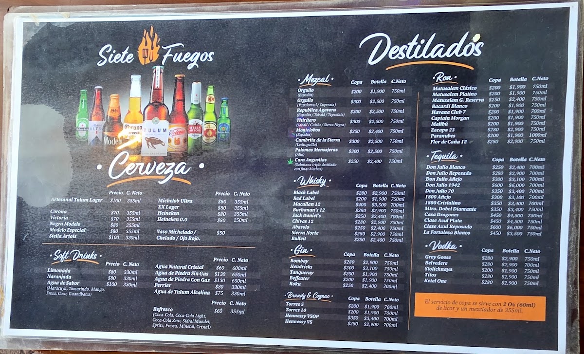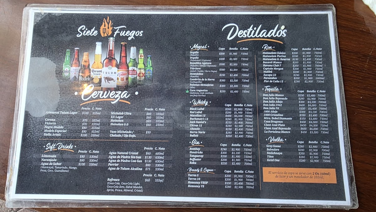 Siete Fuegos Tulum Menu