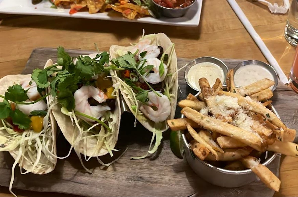 Love that the patio is dog friendly! Our waitress was super kind to have our burger & fries split for us because we told her we were sharing. The avocados on the flat bread was so fresh & the tacos were delicious! Our favourite was most definitely their seasonable burger.