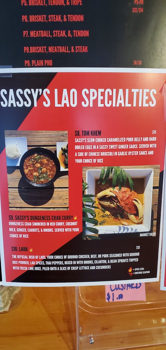 Crispy homemade wontons filled with cream cheese, imitation crab, onions & Lao spices (served with our sweet n' sassy sauce).