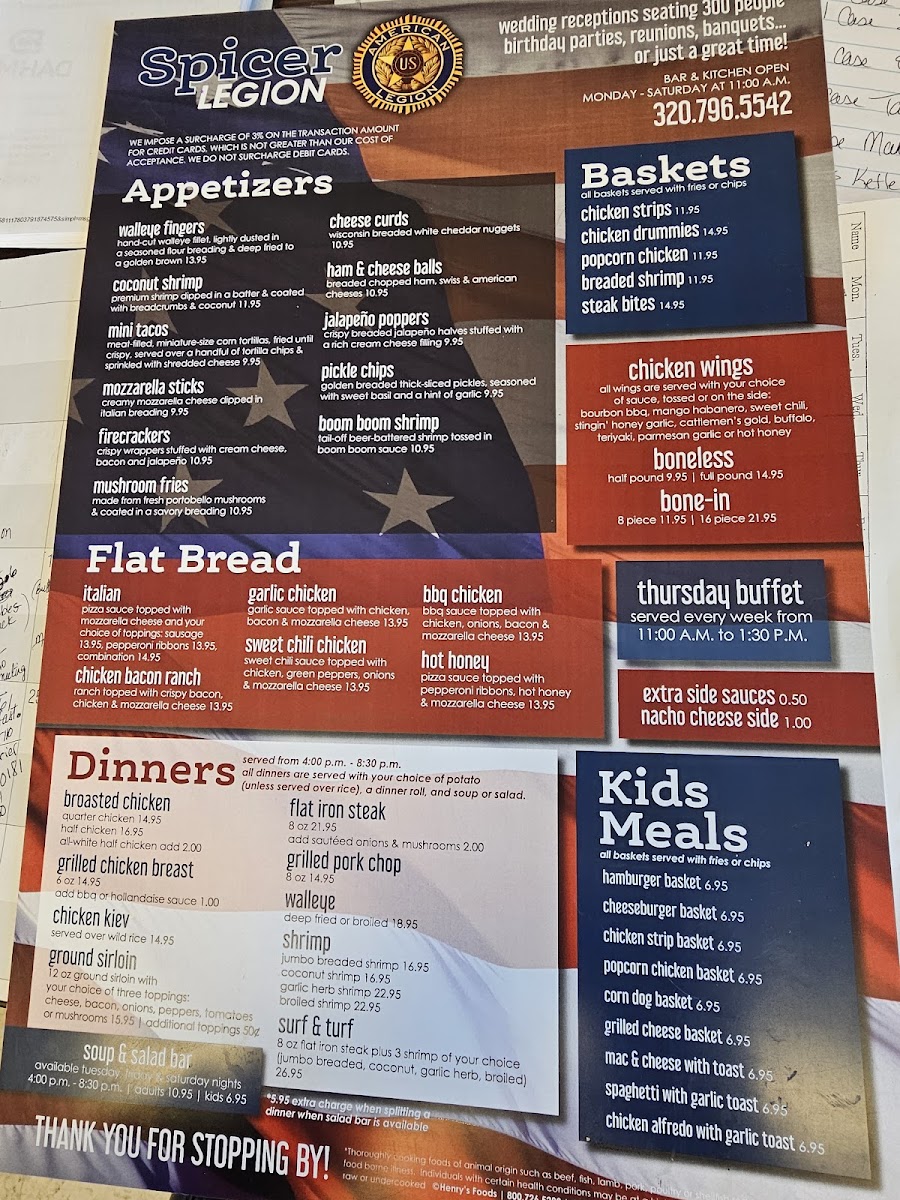 Spicer American Legion Post 545 can be found at 145 Lake Ave S, Spicer, MN 56288, United States. This restaurant, which has gathered 228 user reviews, serves a variety of dishes totaling 5, with popular options such as Chili, Made Soup, Chicken Fajita Wrap, Honey Mustard Chicken, and Buffalo Chicken Wrap, showcasing a varied and hearty menu.