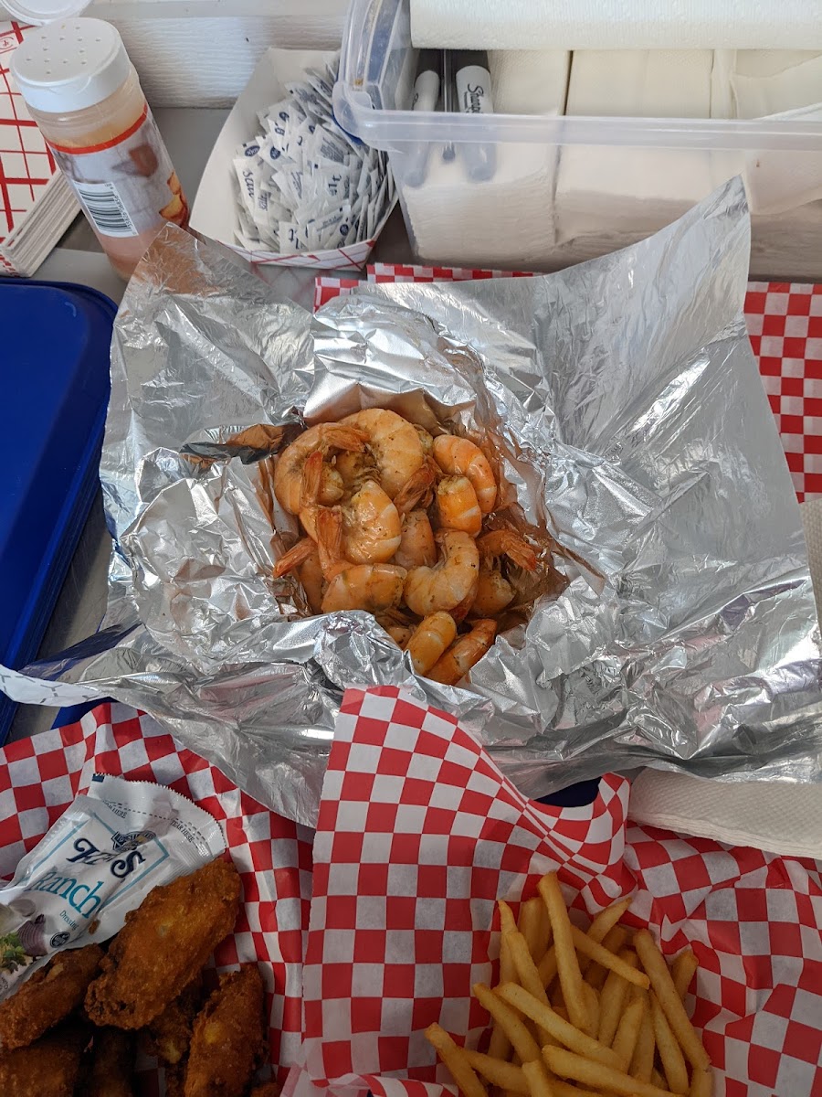Steamed Shrimp are large and reasonably priced . Seasoned perfectly.