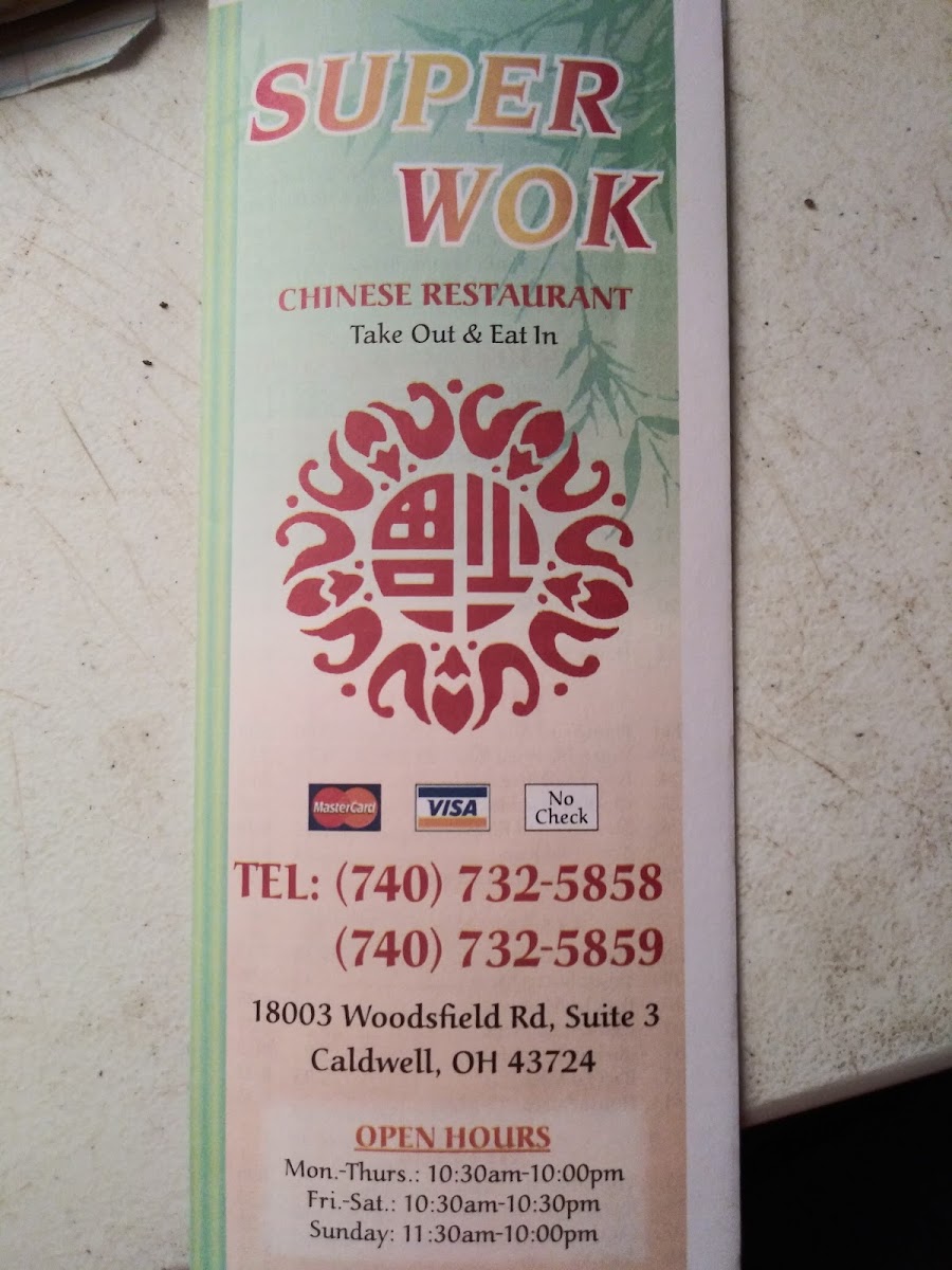 Super Wok is a restaurant located at 18003 Woodsfield Rd, Caldwell, OH 43724, United States, with 221 user reviews. The venue has minimal wait times on most days, but sees a peak wait of up to 15 minutes on weekdays during the early evening and similarly on Saturday evenings. Featured menu items include General TSO's Chicken, Sesame Chicken and Fried Rice, Crab Ragoon, and Pepper Steak with Onion, reflecting its dedication to popular Asian-inspired cuisine.