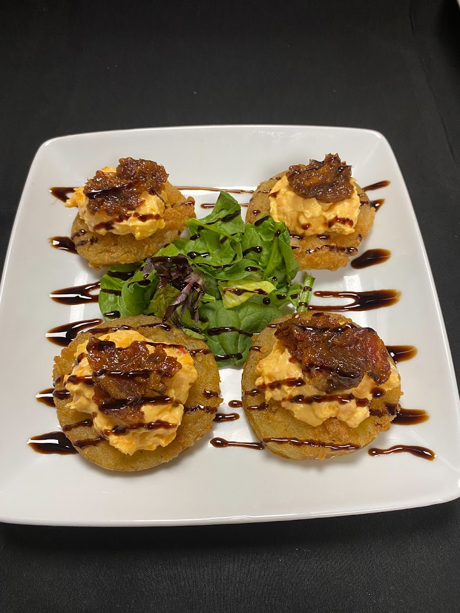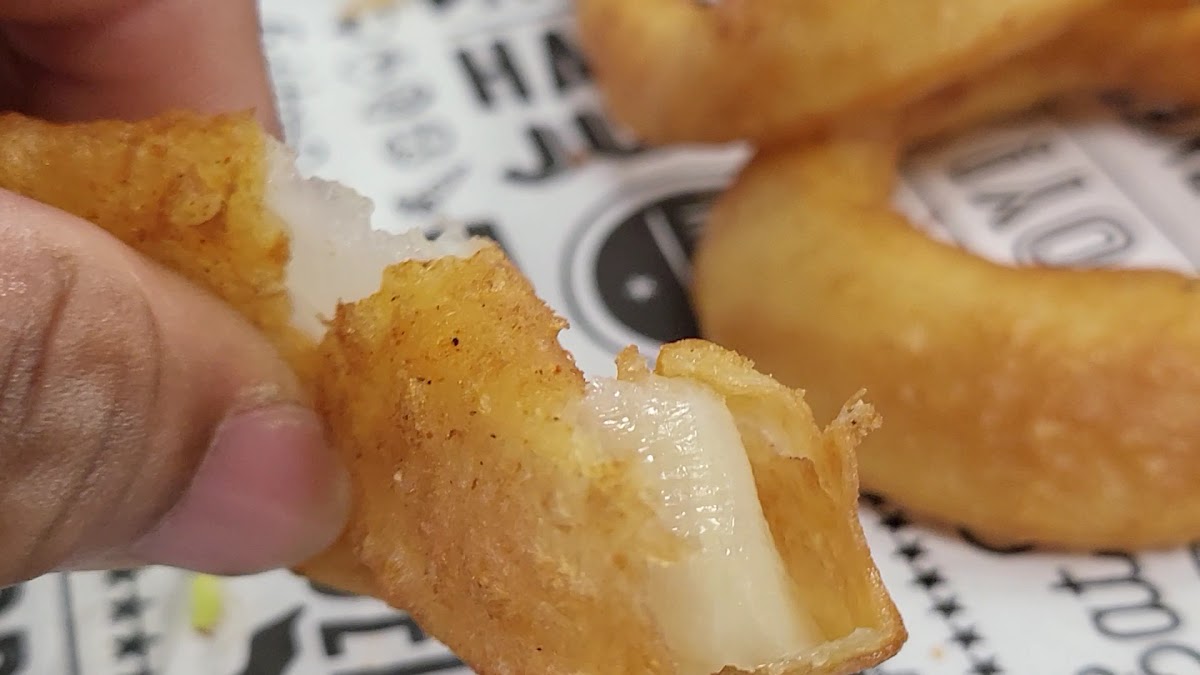 I've been wanting a good burger, but I didn't want to cook it myself. So, I went to Tab Bistro. My goodness, I had a smokehouse burger with an onion ring. These onions rings had a magnificent crunch and taste to them, the dipping sauce is great. Not too many people have a good dipping sauce, but this one right here I couldn't get enough of. But the burger itself, the chef must've gotten cows from the man upstairs. This burger is moist, flavorful, meaty, pickles made in house, tomatoes fresh, lettuce fresh. Everything about this burger is awesome. I know where to go when I want a great burger. This is where you go. They also have these apple pie and peach cobbler egg rolls, great. Can't do too many of them because I'm diabetic. But my goodness, come here and try everything.