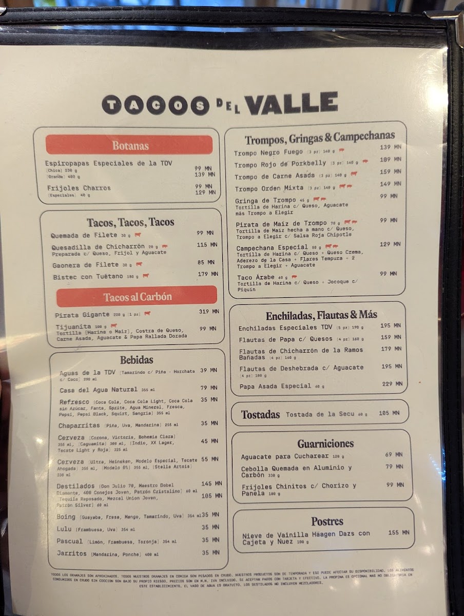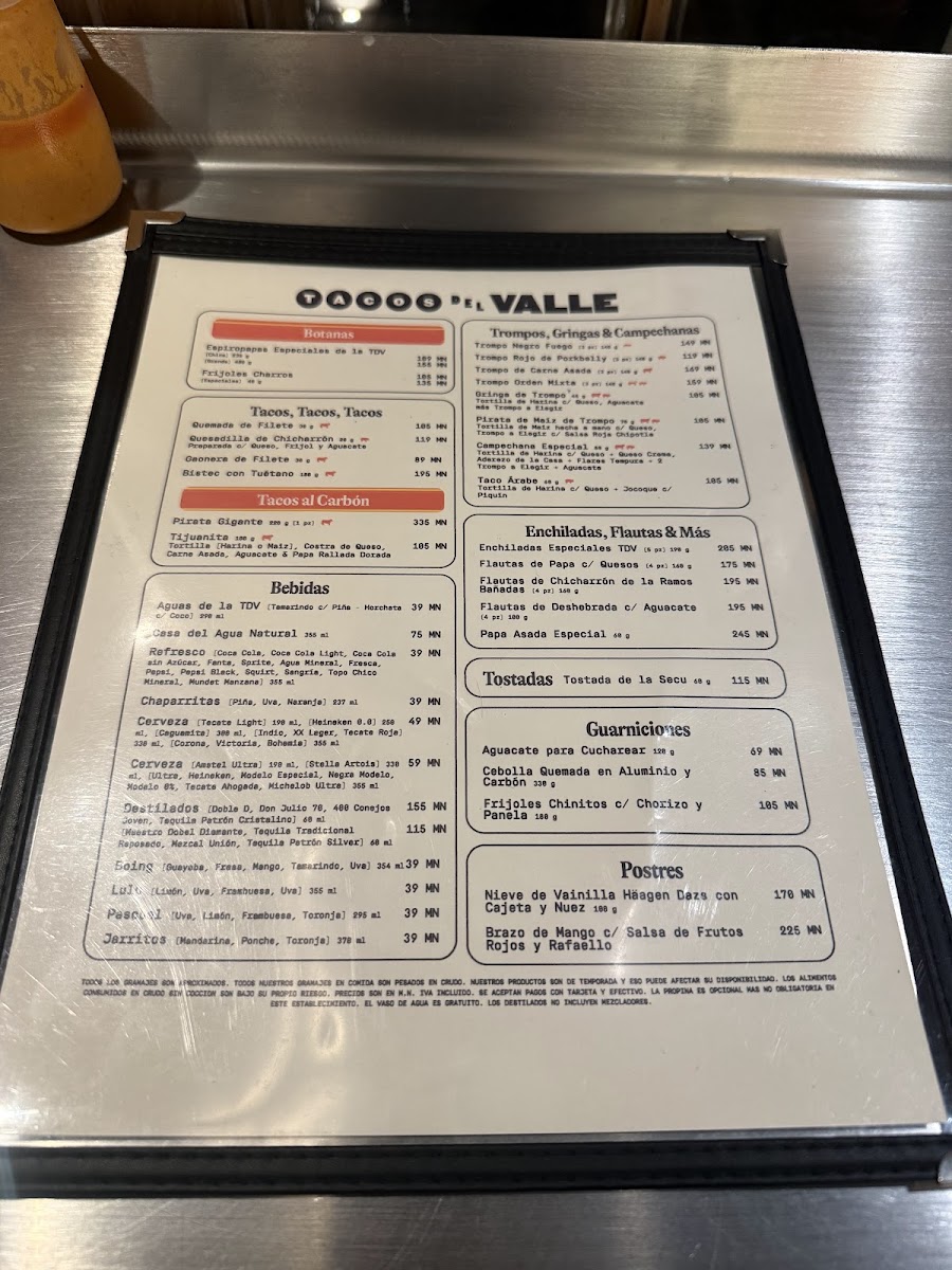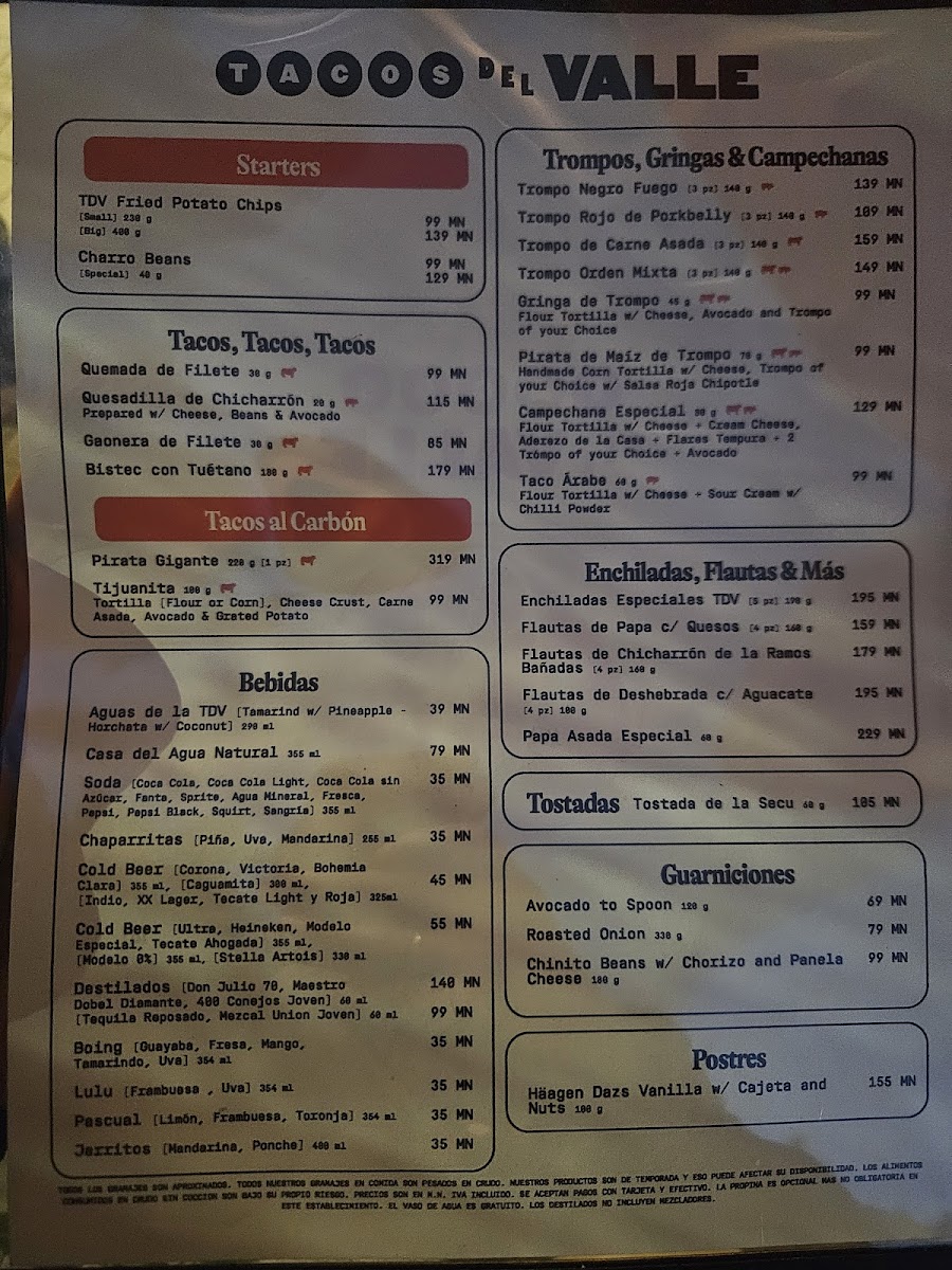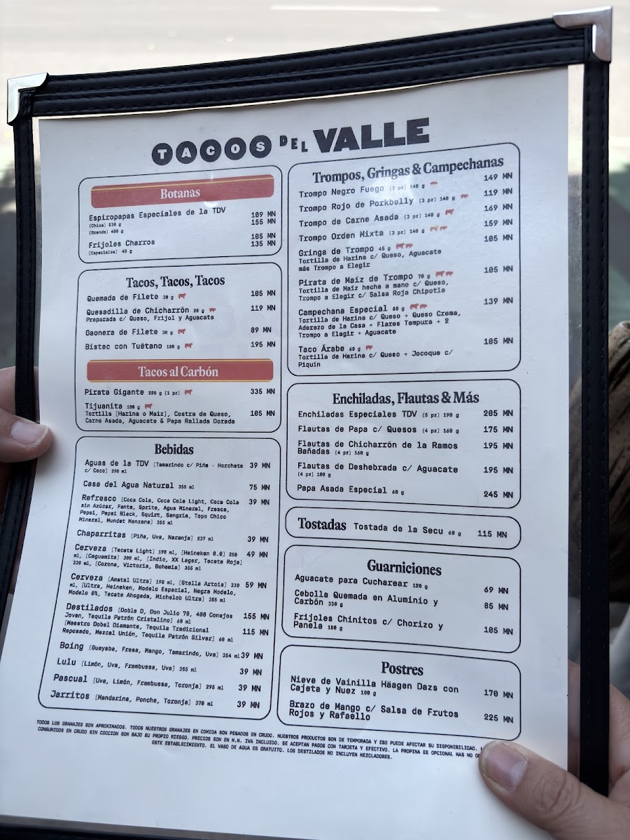 Tacos Del Valle (Roma Norte) Menu